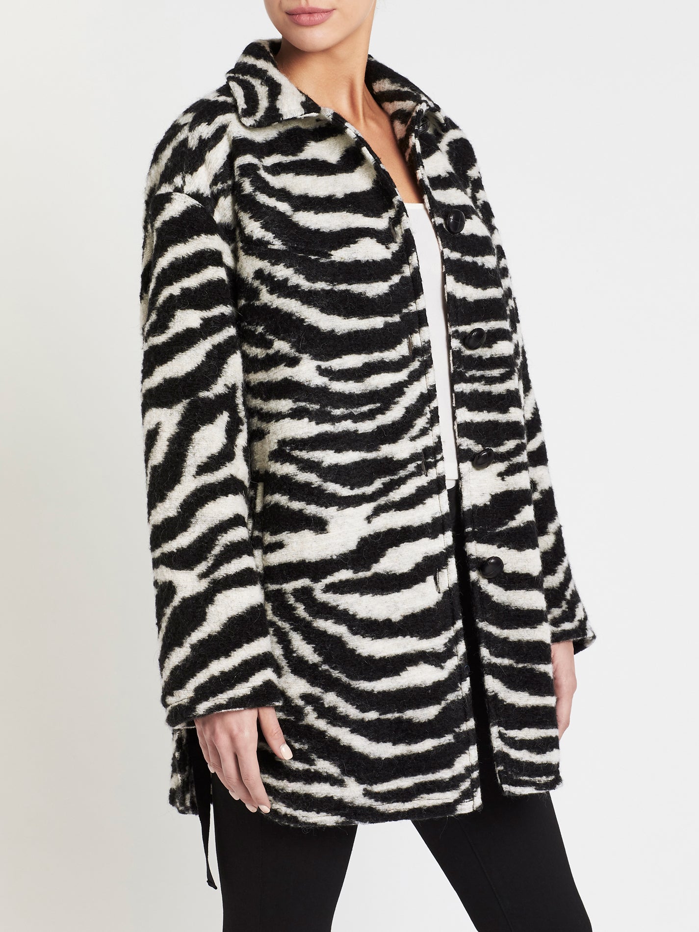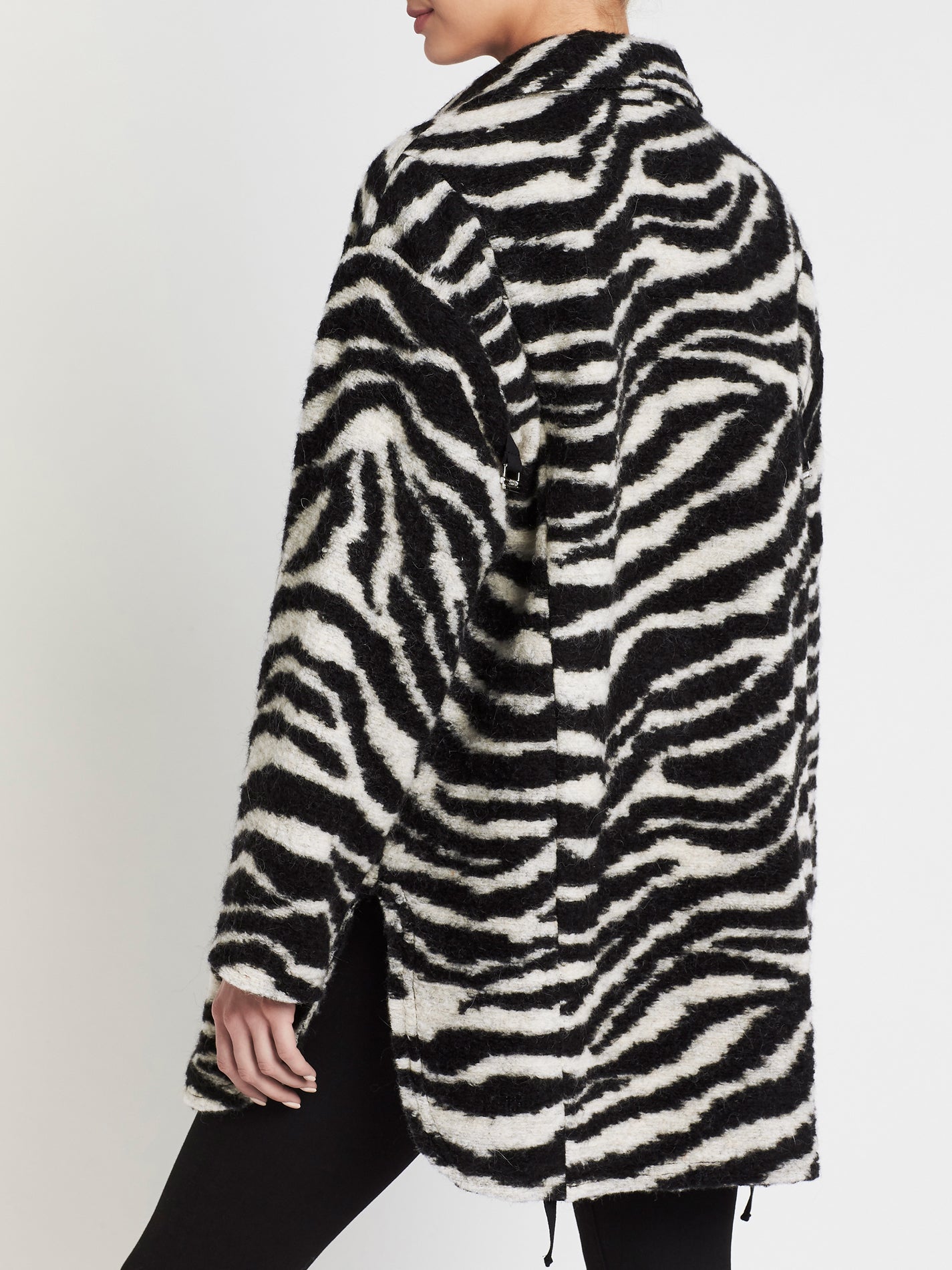The IRO Bera Coat in Black/ White is an oversized fit