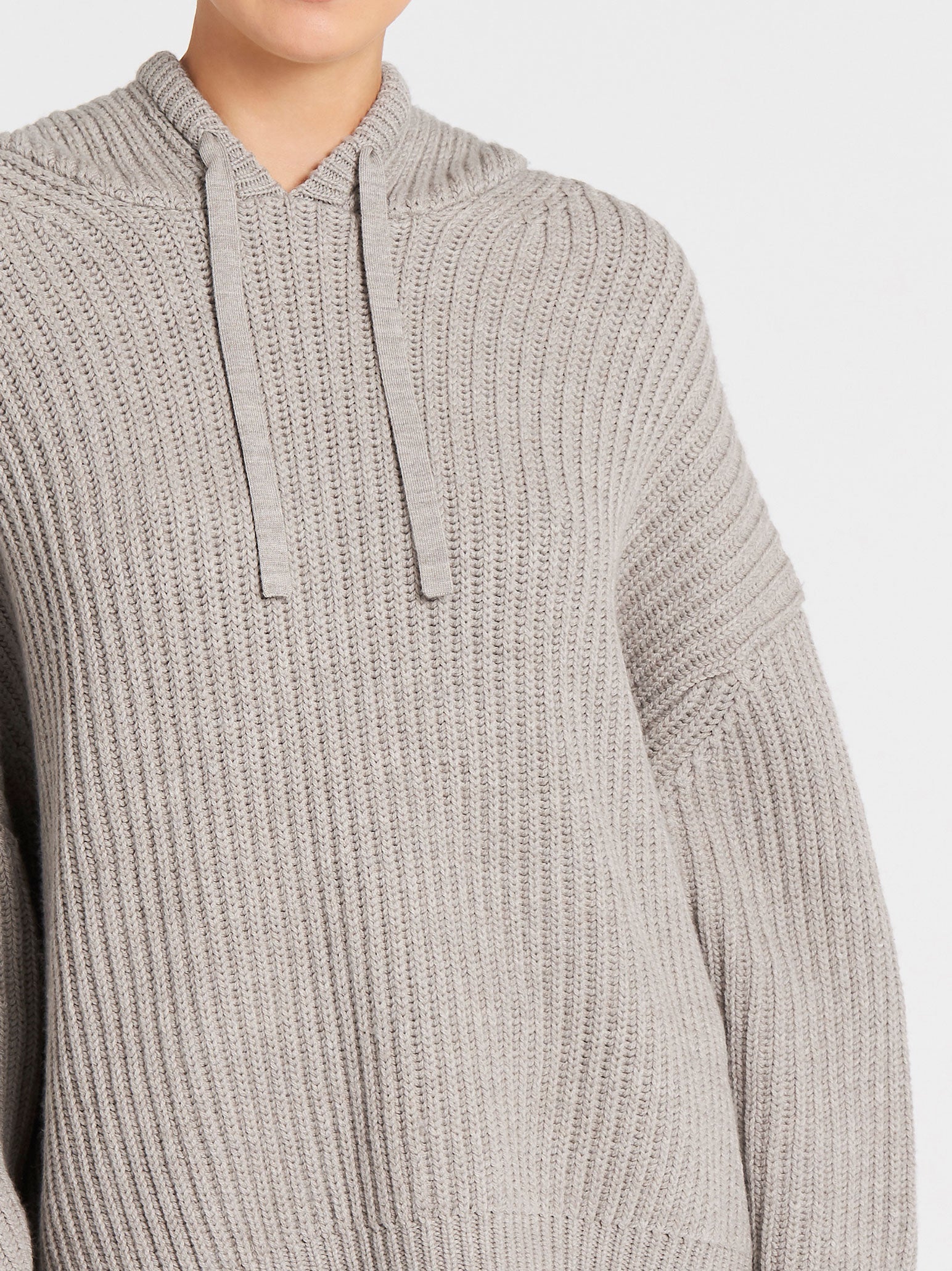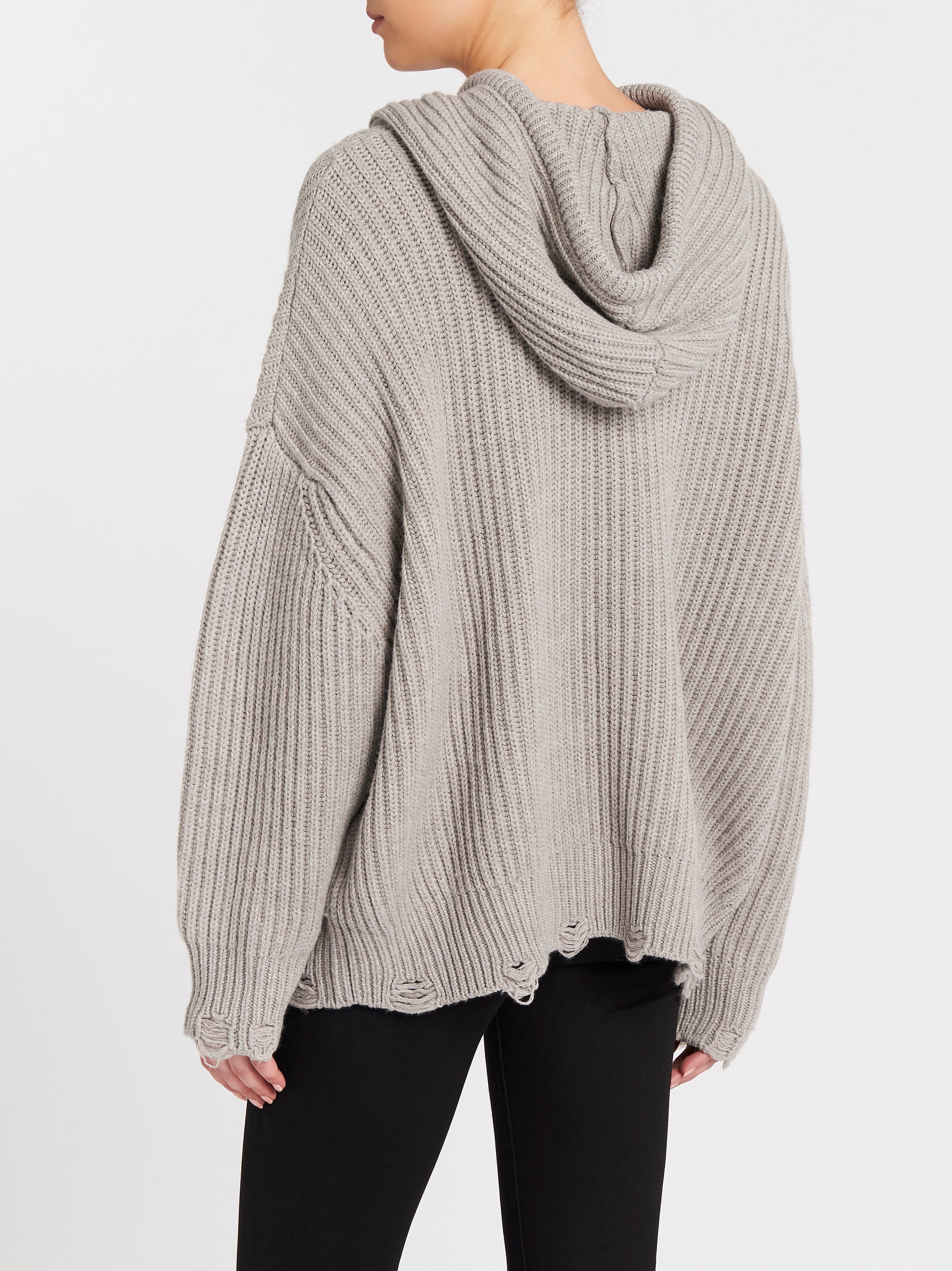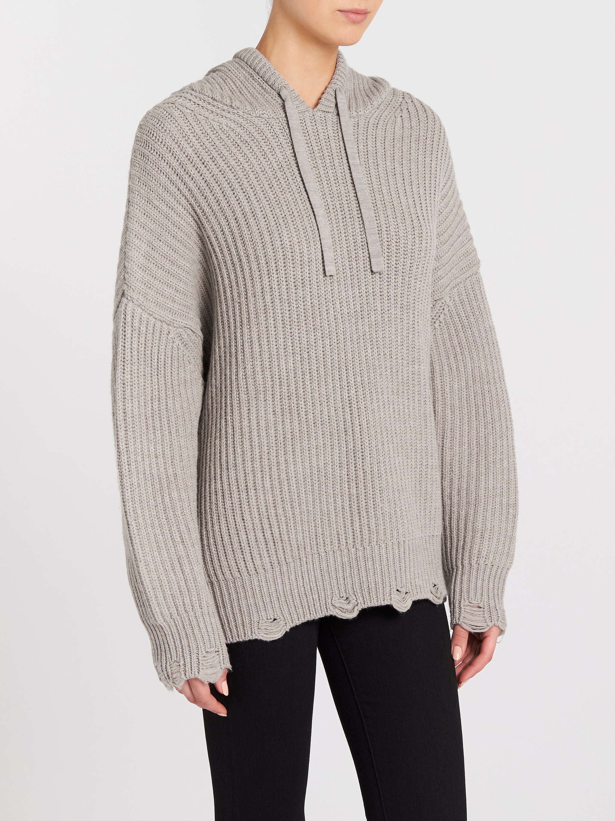 The Haedi Sweater in Beige Stone Grey by IRO is your perfect weekend sidekick. Constructed from ultra soft merino wool this hooded sweater features and oversized cut with an adjustable drawstring cord and is finished with distressed cuff and hemline details. Pair back with a black skinny jean for a rock and roll edge.