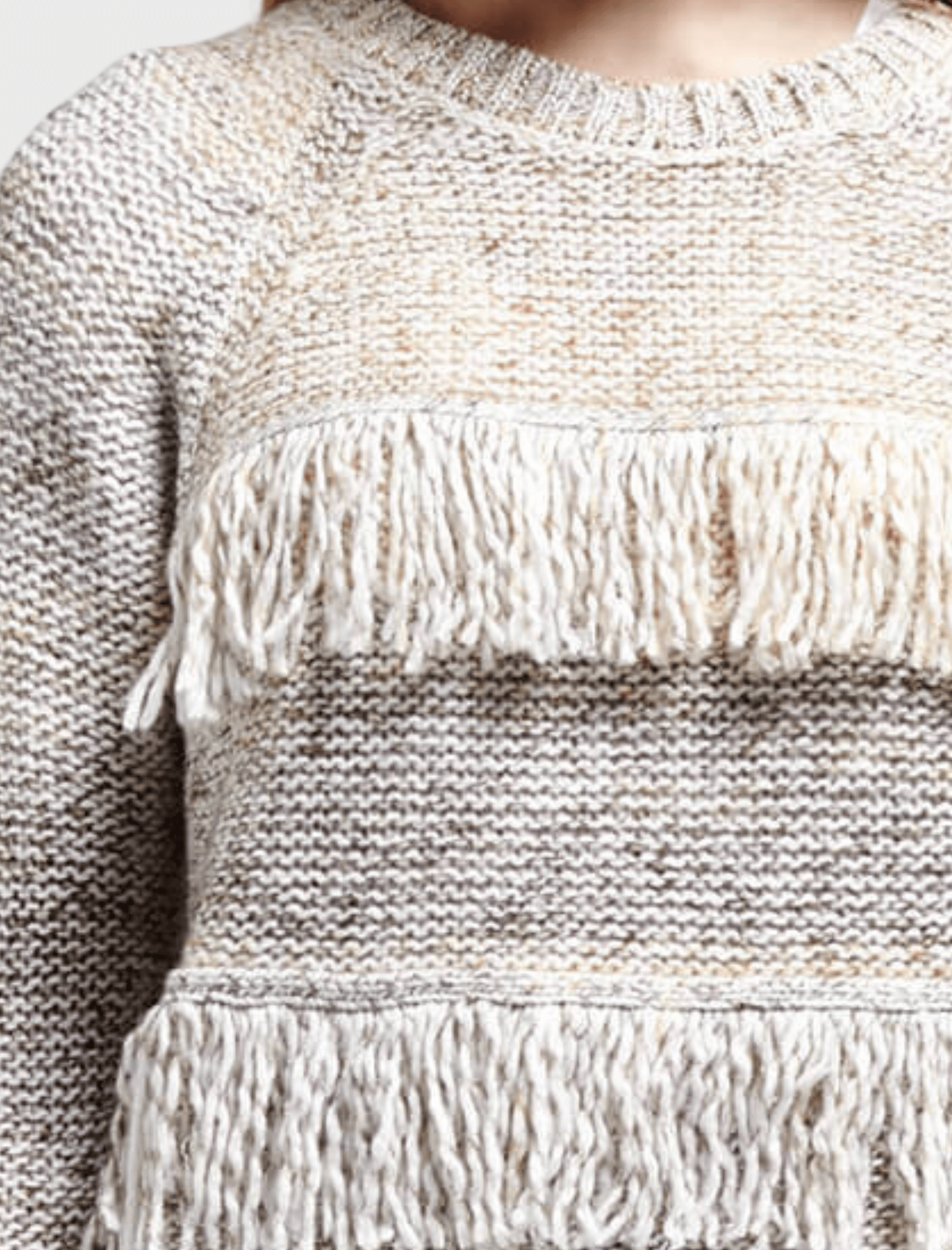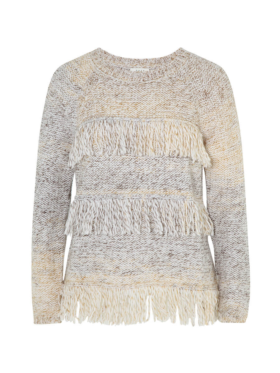 The Tanis Knit from Joie is a chunky marled knit that features front side fringe detail. This jumper is a beautiful earthy brown multi colour, has a crew neck and is detailed with ribbed neckline and cuff detail.