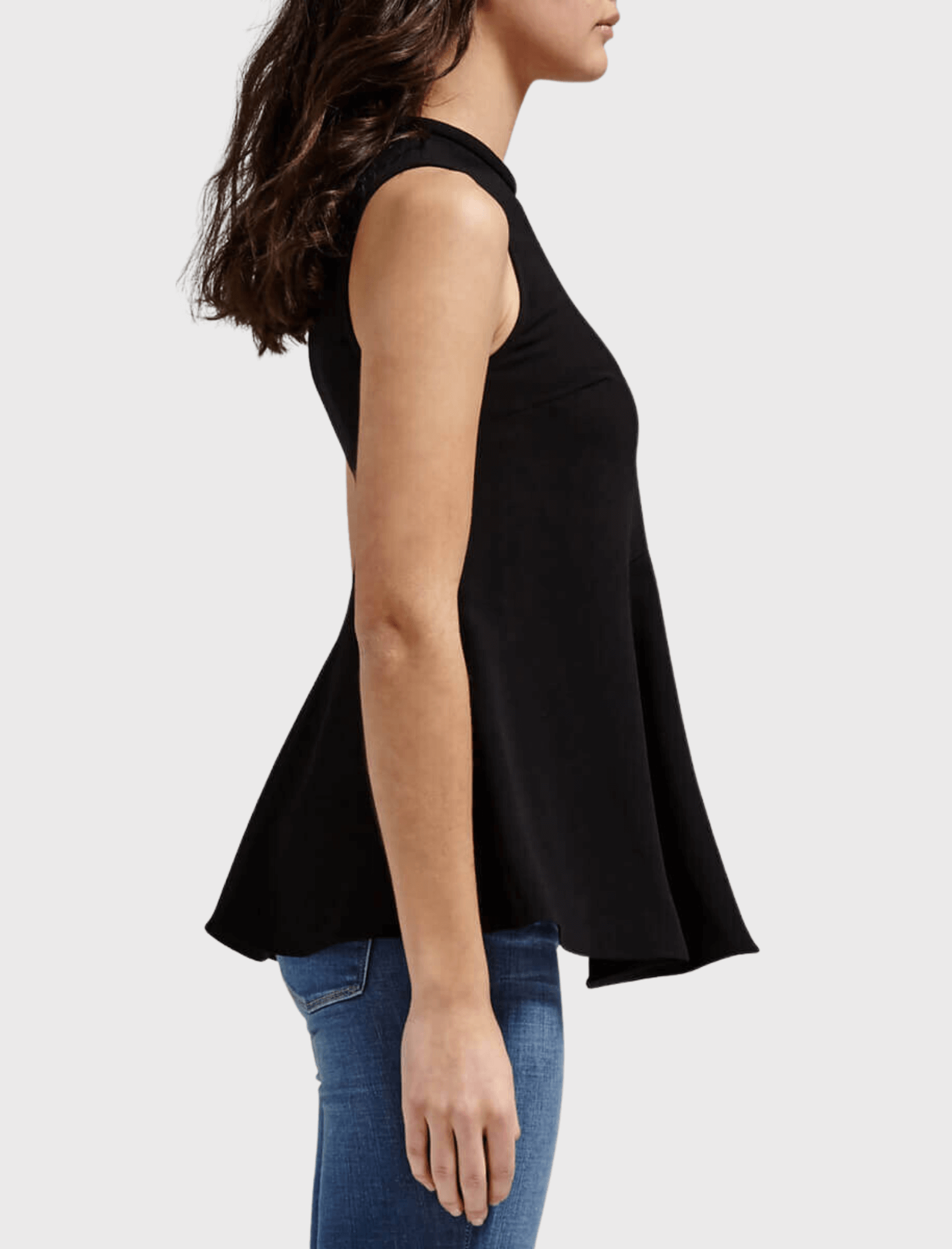 The Nicholas Crepe Flare Hem Tank in Black is made from 100% Polyester