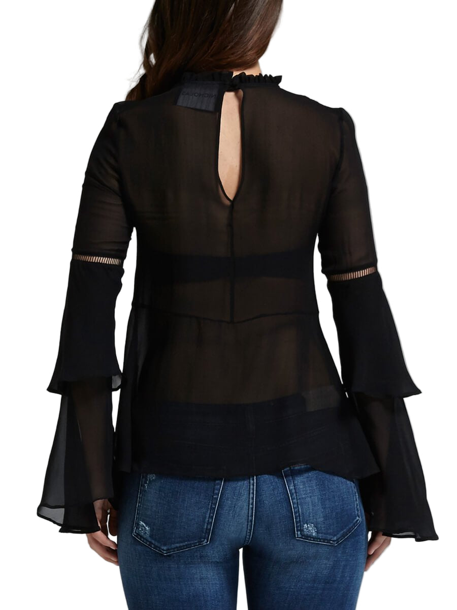 The Nicholas Georgette Layer Sleeve Top is Black 100% Silk