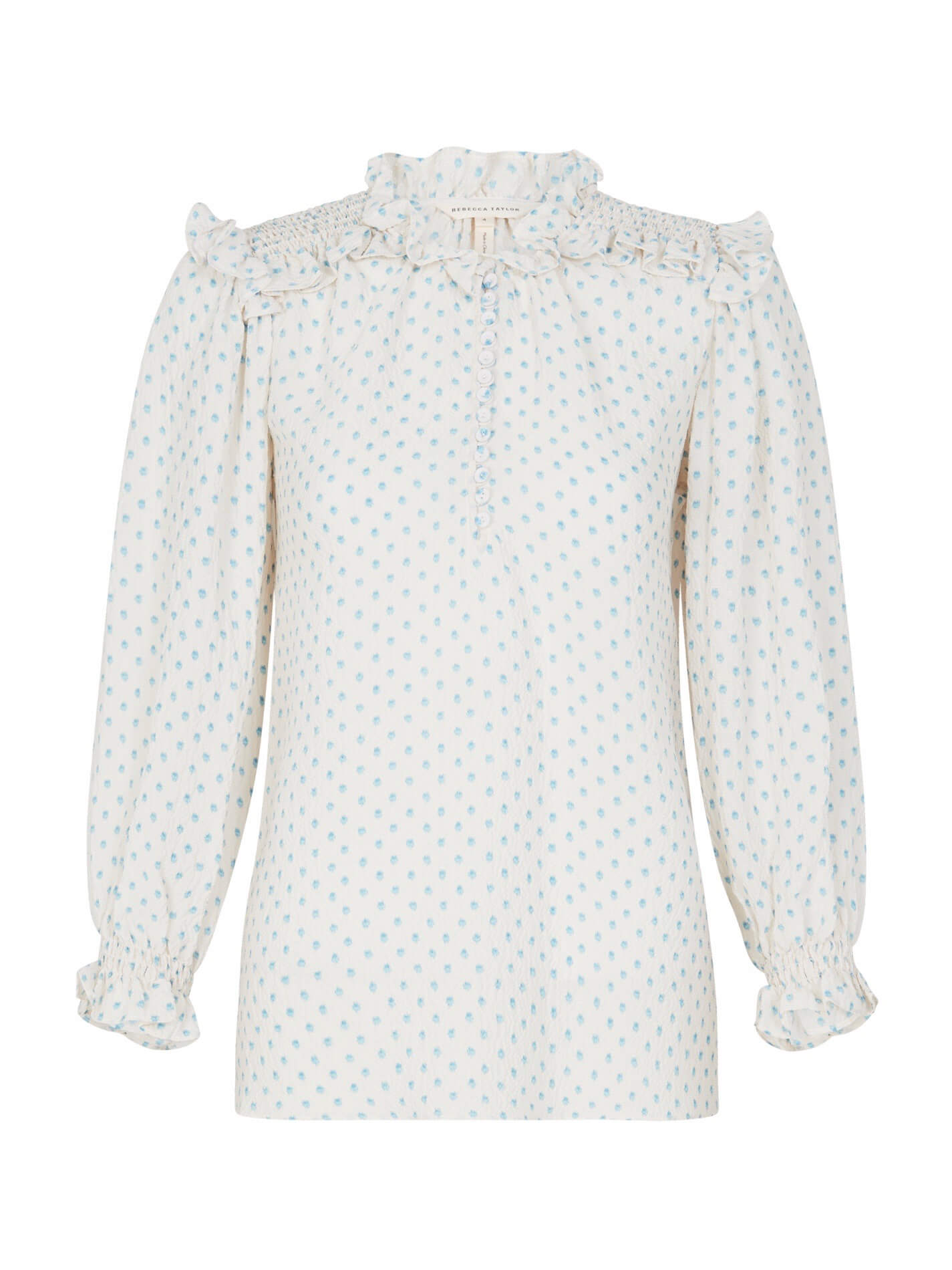 The Rebecca Taylor Ikat Dot Print Top in Vanilla Combo fits true to size