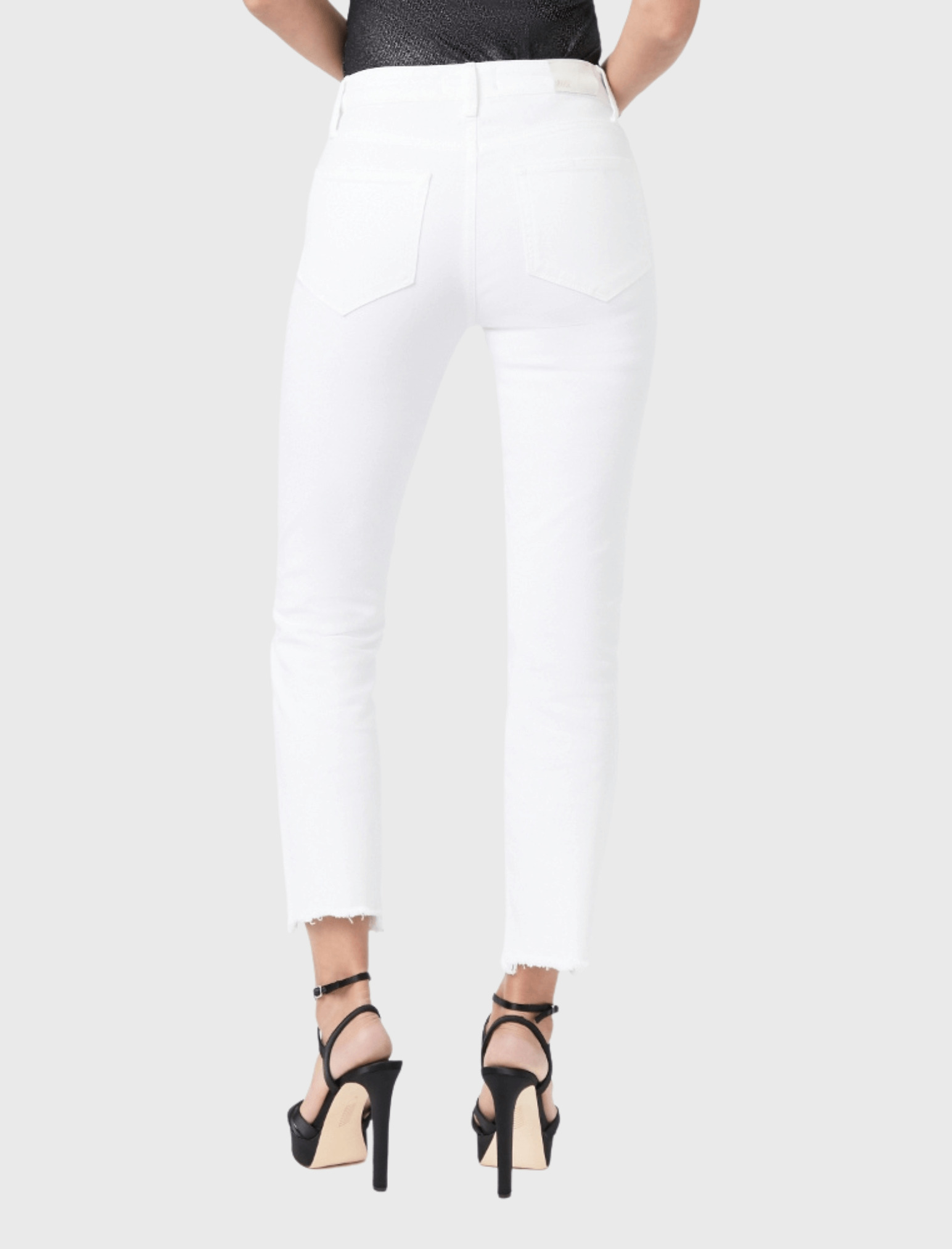 The perfect summer jeans for fans of Paige Denim. The beloved Cindy Jean is your classic high-rise style with a perfectly straight leg. The ankle is finished with a raw, destructed hem for a modern feel. Made from a super soft white denim, the fabric is infused with elastane so that you feel secure and protected with no show through the material. This is a wardrobe staple that will take you through every season.