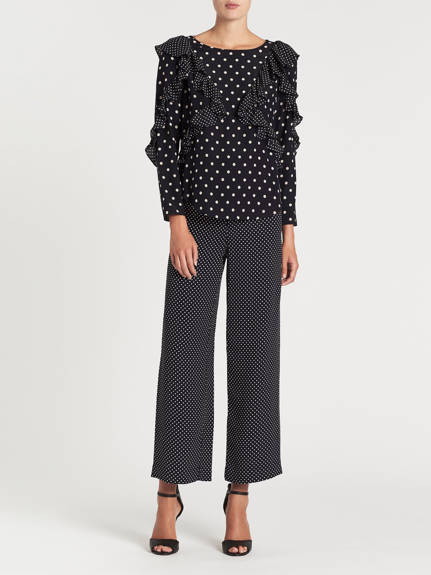 The Rebecca Taylor Dot Print Pants in Navy are made from 96% Viscose 4% Elastane