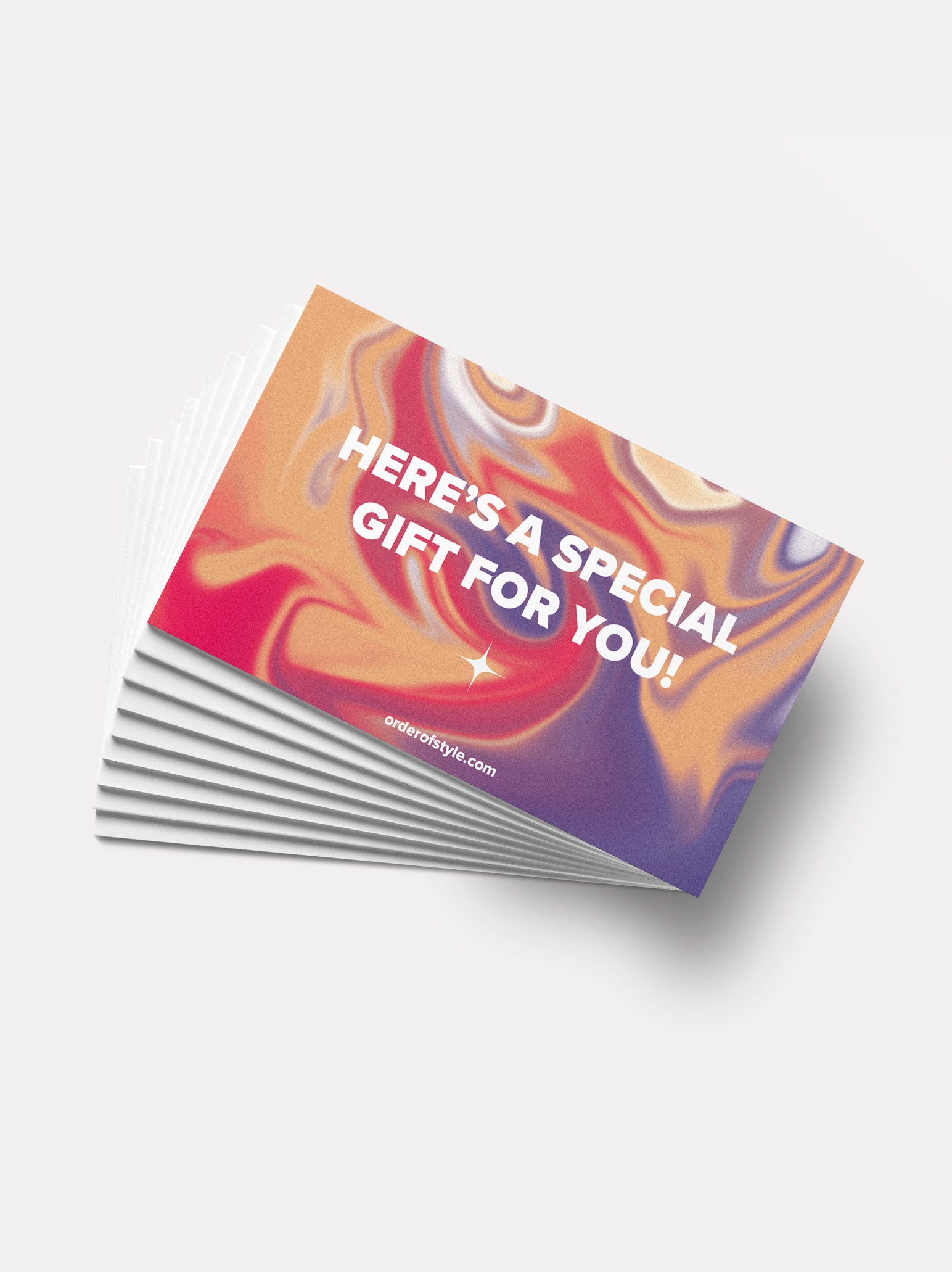 Send your lover, friend or enemy a gift card from us. That way they can choose what they want and slay with their look! We hand write each gift card so let us know if you have a personal message hello@orderofstyle.com. Want to combine values? To make an even bigger and stronger Gift Card? Grab as many as you like and we will mush them together for you.