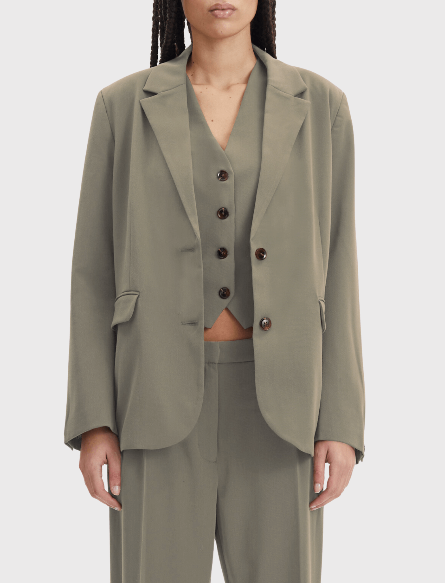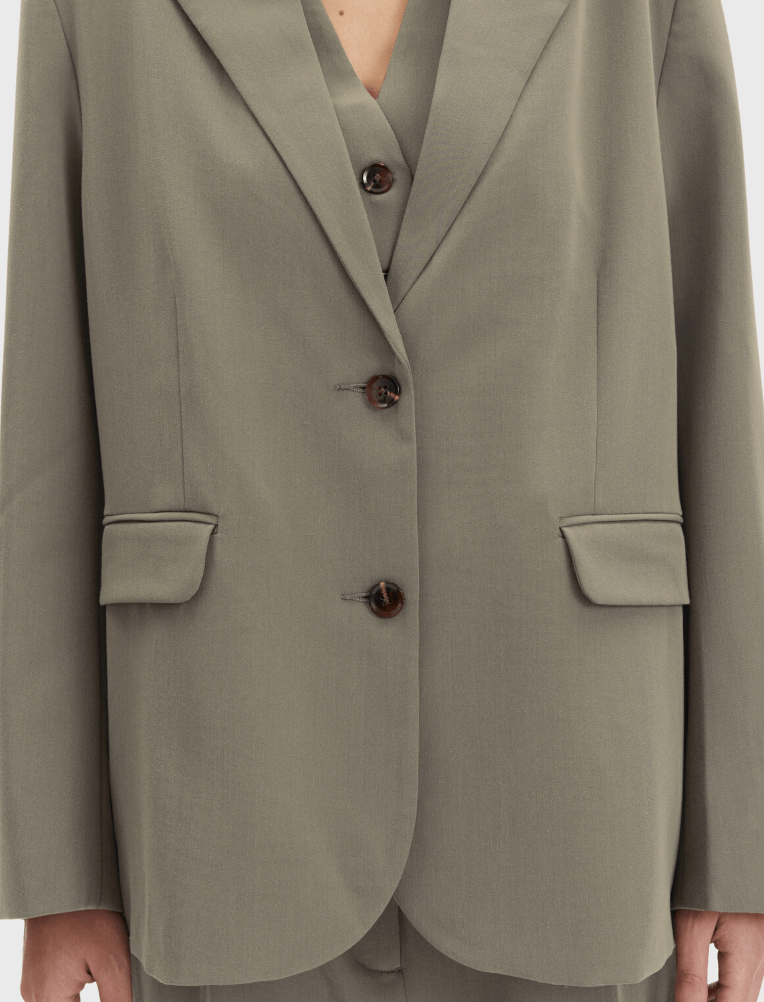 The Samsoe Samsoe Ramona Blazer in Silver Sage is a relaxed fit