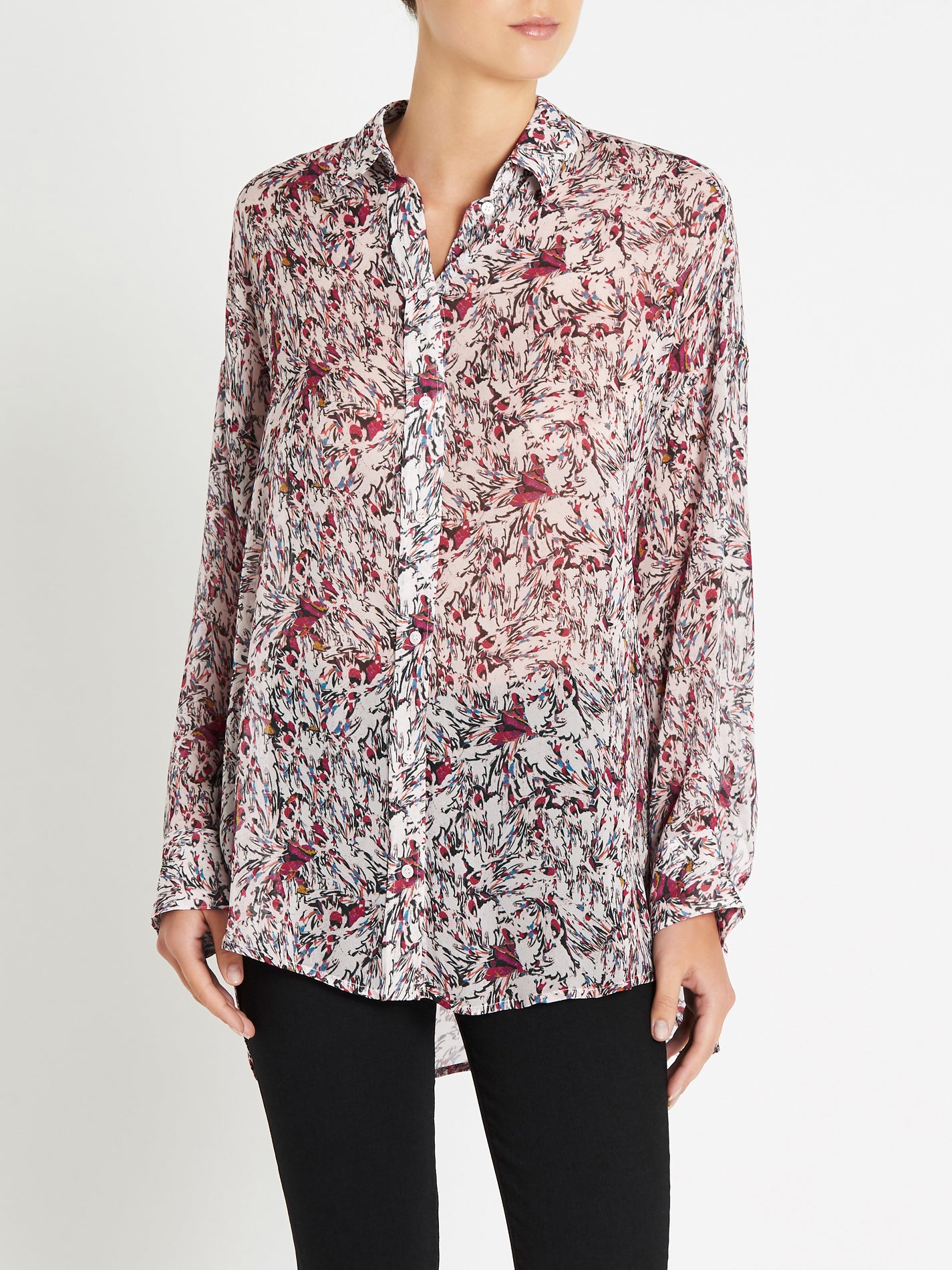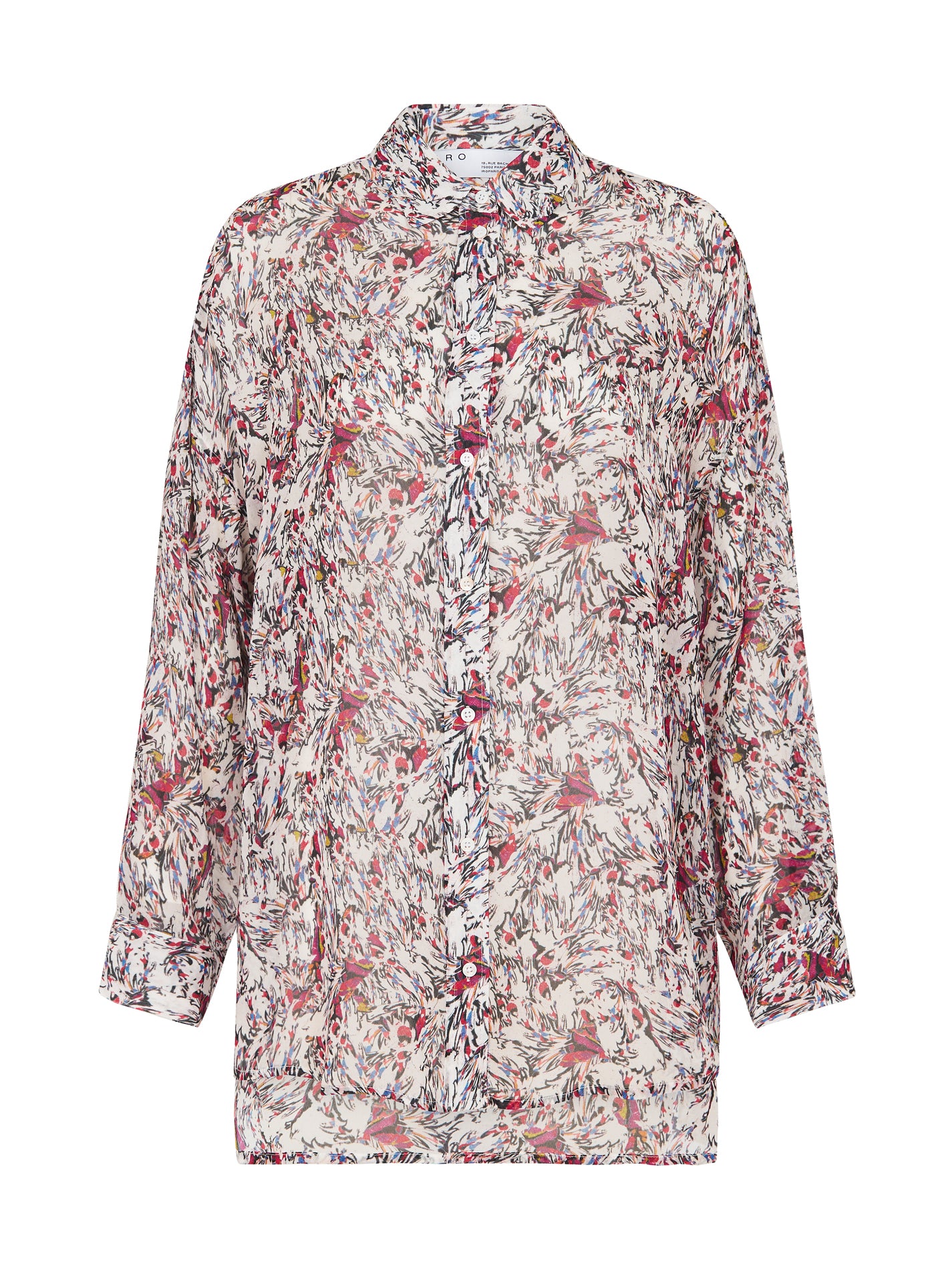 Give a new meaning to effortlessly cool with the Eager Shirt by IRO. The slightly oversized fit drapes perfectly over a white tee and denim for a dressed down Sunday look. Pair the look with some chunky boots or heels for added cool. The soft silky fabric and eye-catching print make this piece a must-have.