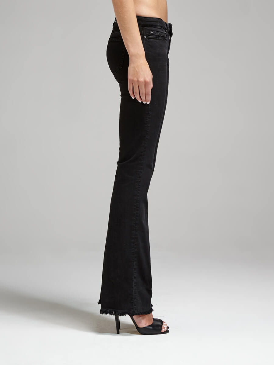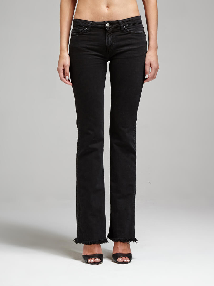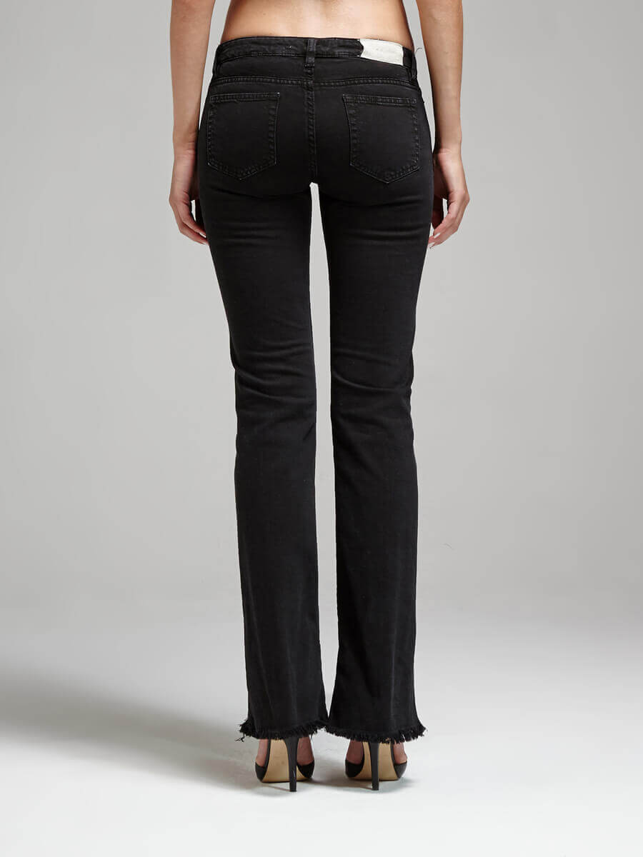 The IRO Freddy Raw Flare Hem Jean in Black Stone is made from 98% Cotton 2% Elastane