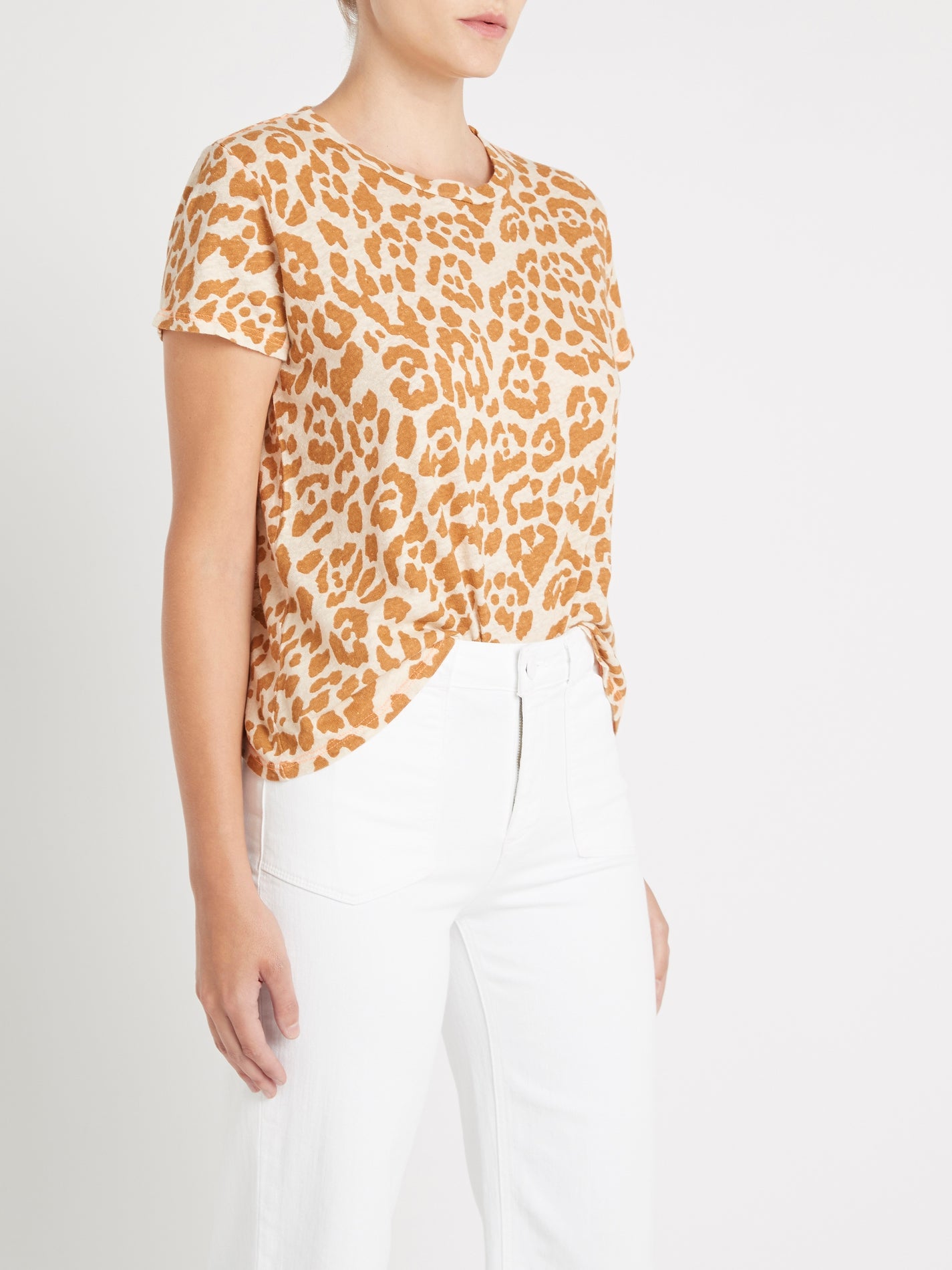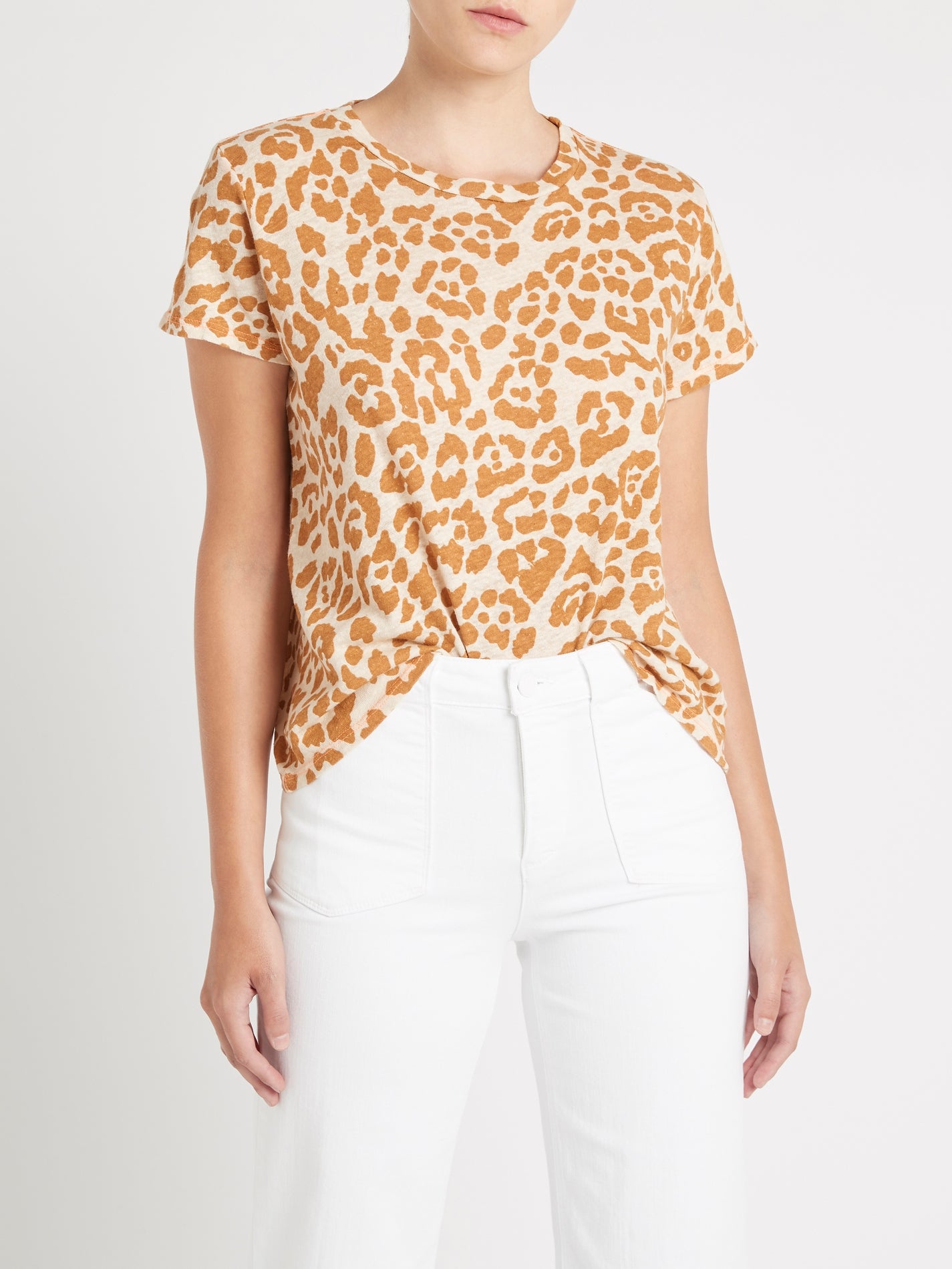 Meow! You're on the Prowl - and The Lil Sinful Tee from Mother Denim is your prey. This vintage-inspired, slim fit crewneck is made from a linen blend with a neutral animal print and coral-colored stitching. Release the beast with The Lil Sinful Tee in Prowl!