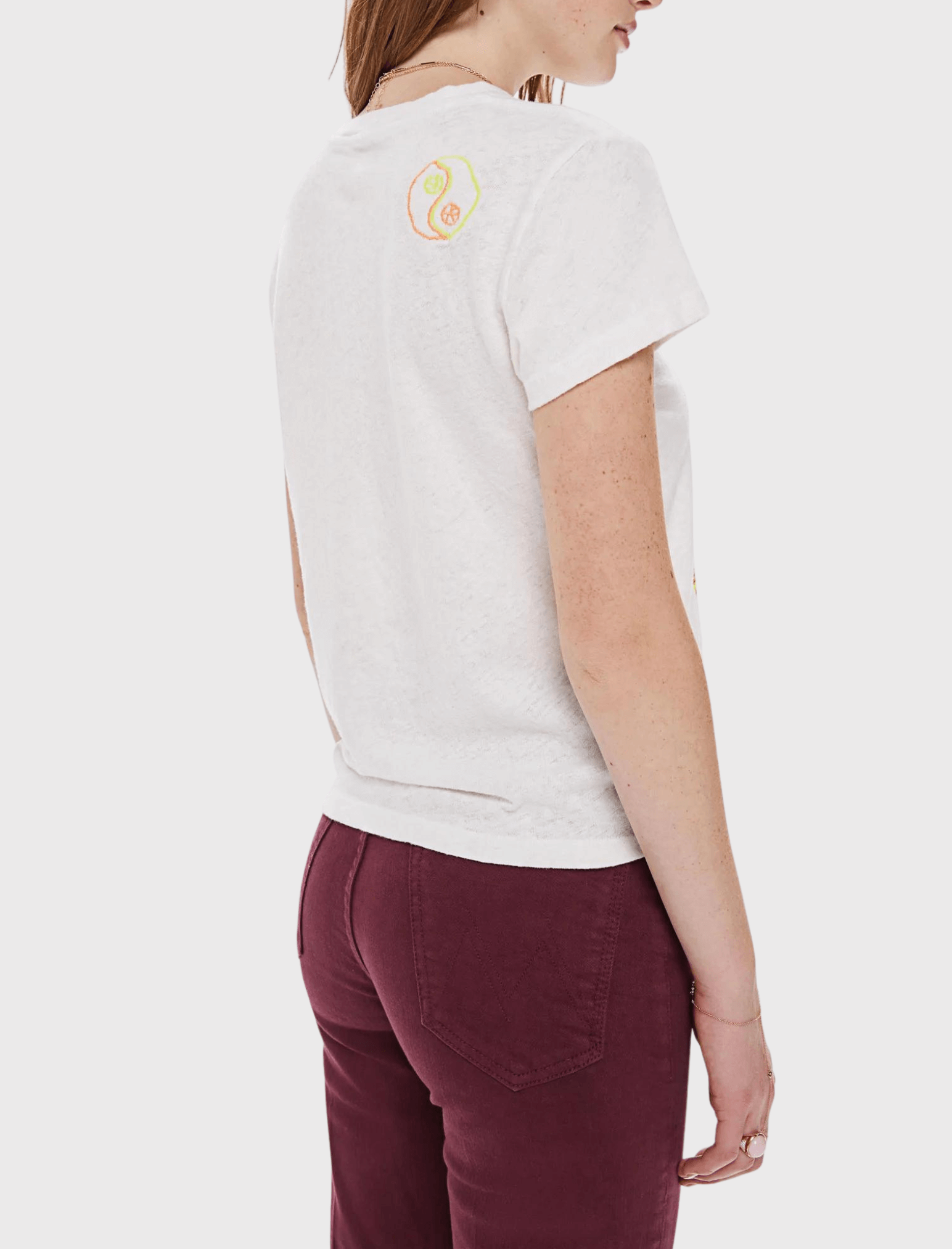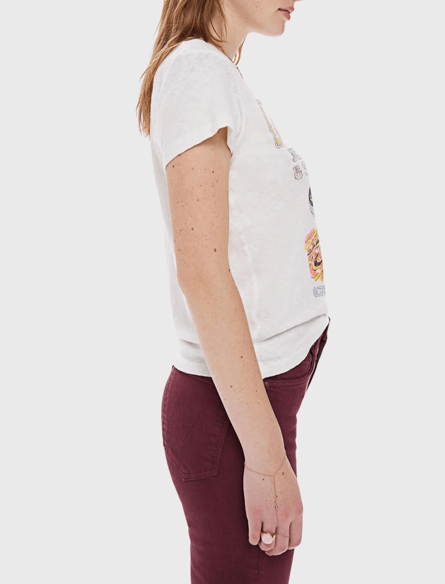 The Mother Denim Lil Sinful Tee in Dazzler is made from 50% Cotton & 50% Linen