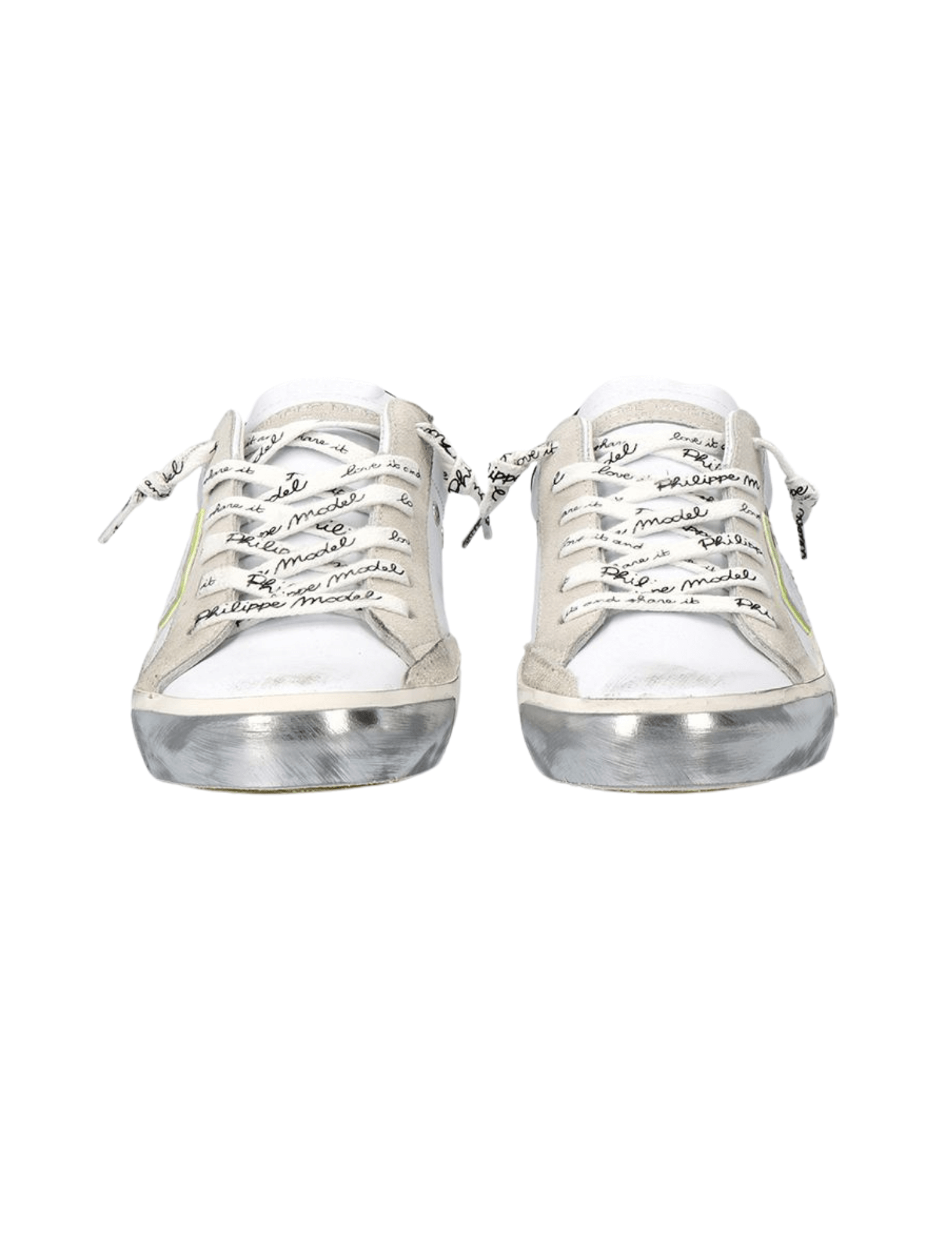 The Phillipe Model Prsx Low Sneaker in Metal Multicolour / Blanc Silver is made from 100% genuine leather and suede upper, leather inner and a rubber sole