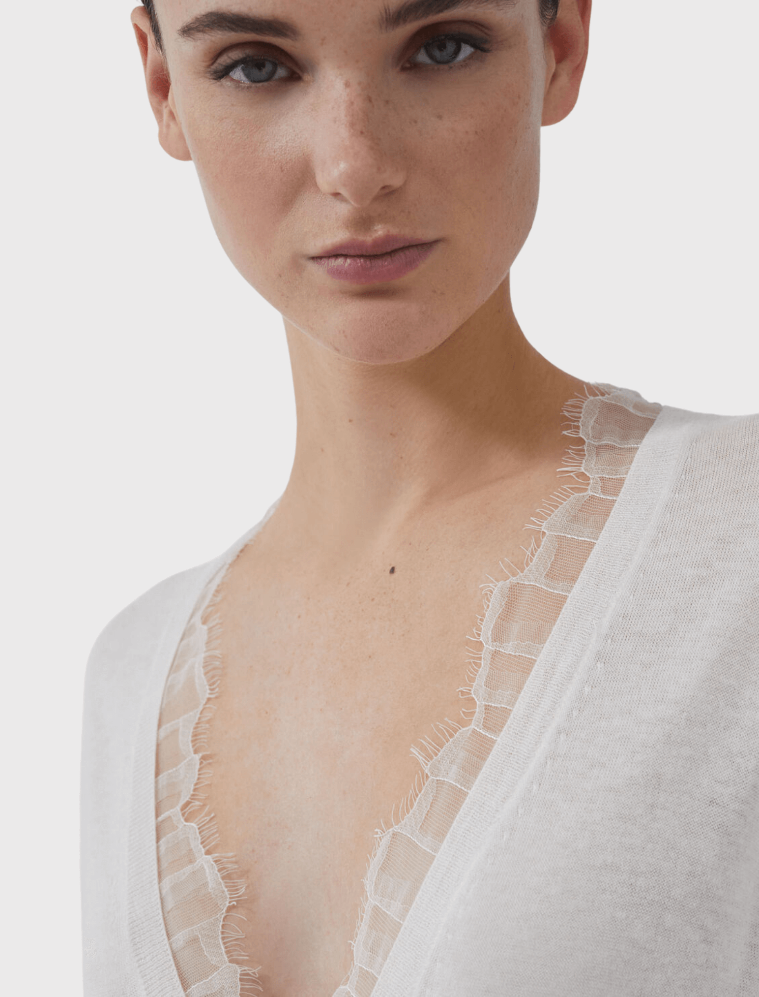 The IRO Jayden Knit in Optical White is made from 67% Cotton, 33% Silk, Lace: 100% Nylon