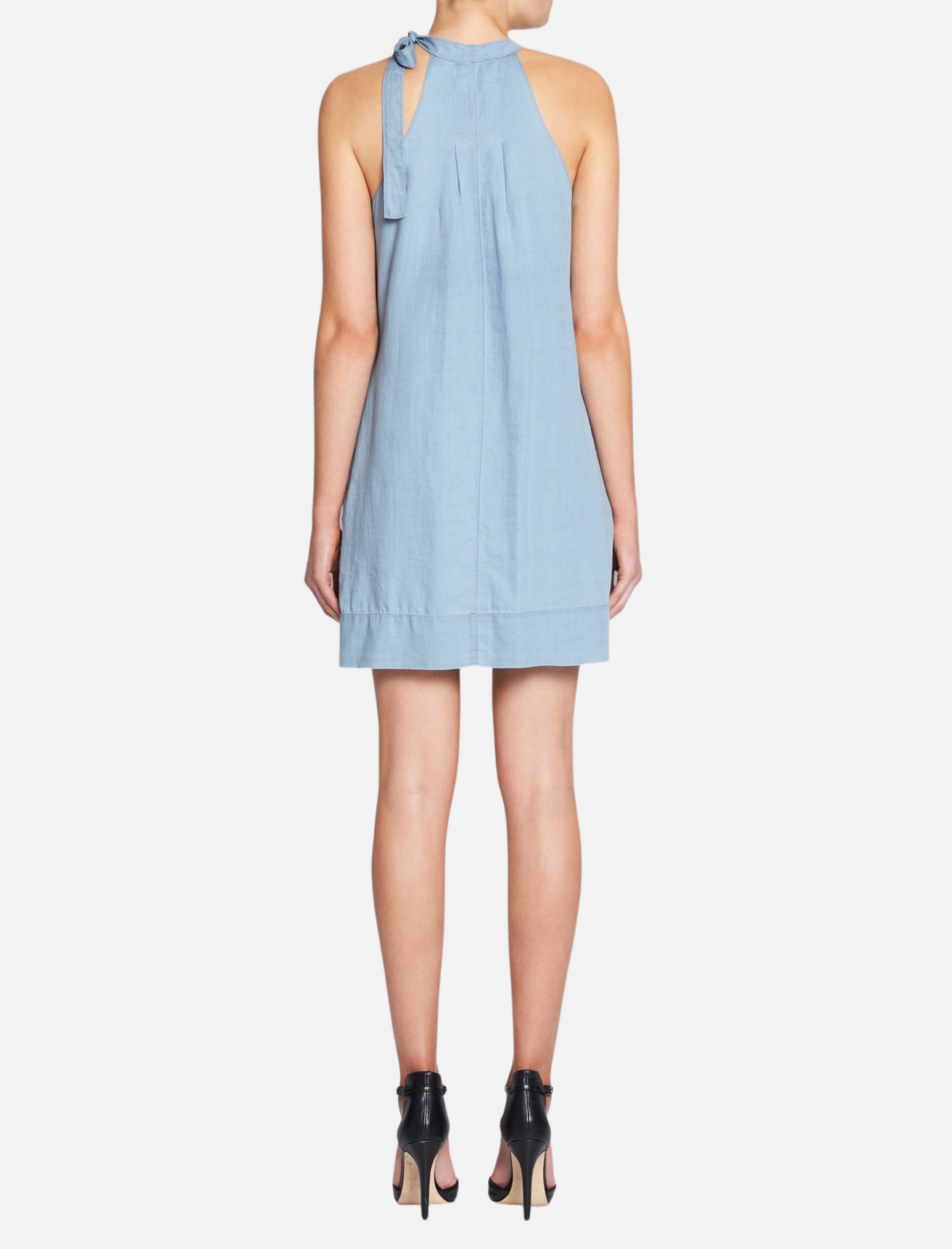 The Esme Dress in Graceful by J Brand has been constructed in a cool and lightweight cotton and features a mock neck with self tie and front key hole cut out. This mini dress is the perfect piece to throw on in the warmer months for instant no fuss style.