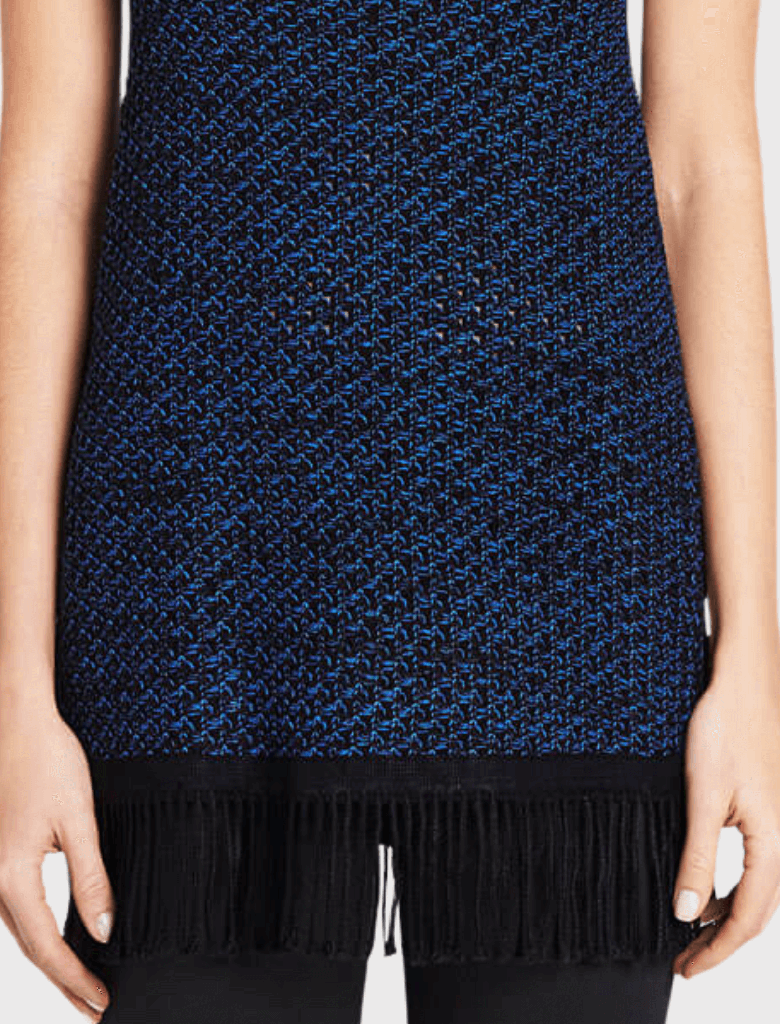 The N / Nicholas Knit Fringe Tunic in Black / Cobalt is made from 86% Acrylic 14% Cotton