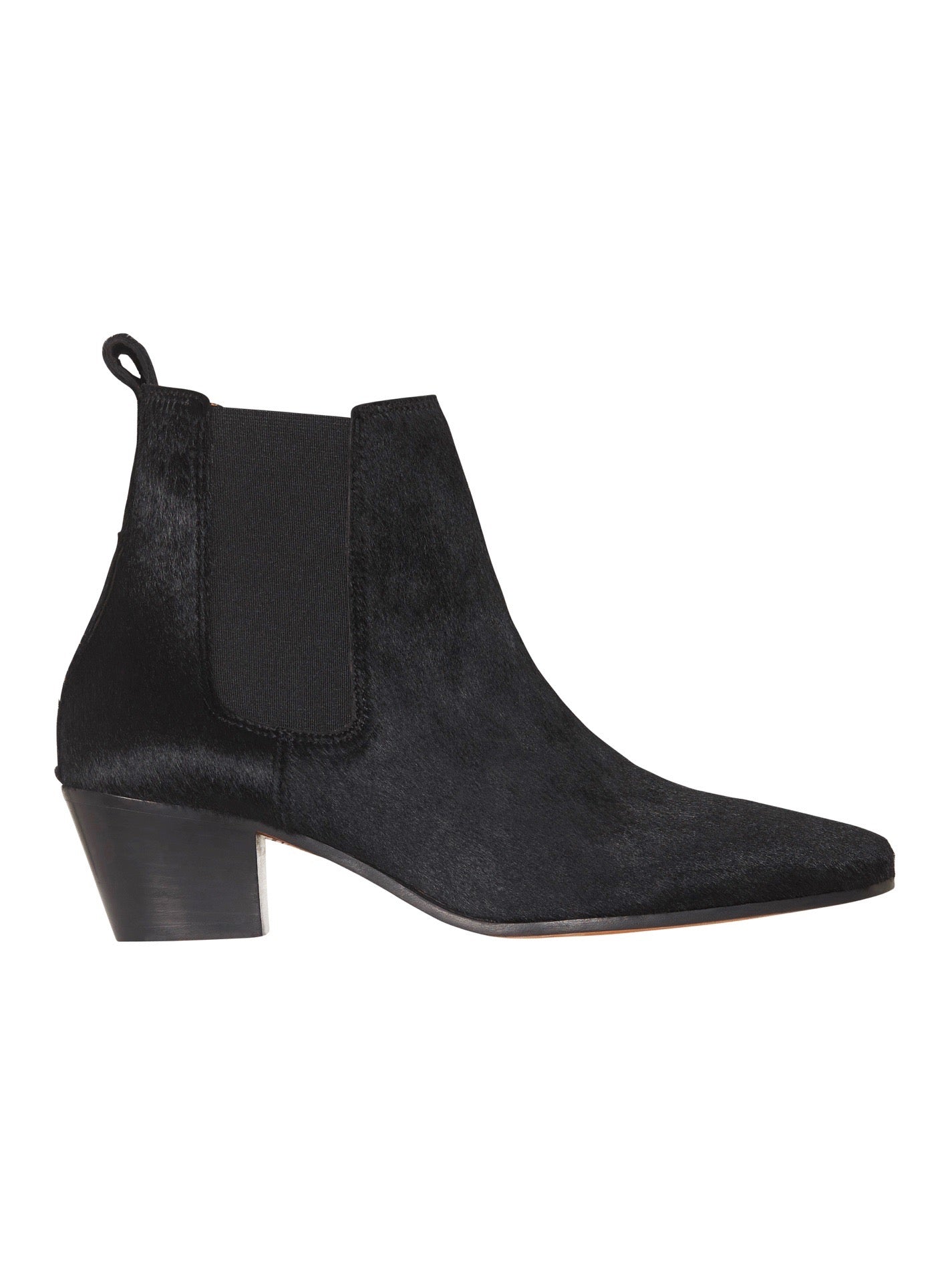 The IRO Yvany Boot is a stunning must have classic that will easily transition into any wardrobe. Constructed from black calf hair and leather, these Chelsea style boots feature an elasticated side gusset, stacked wooden heel and pointed toe.
