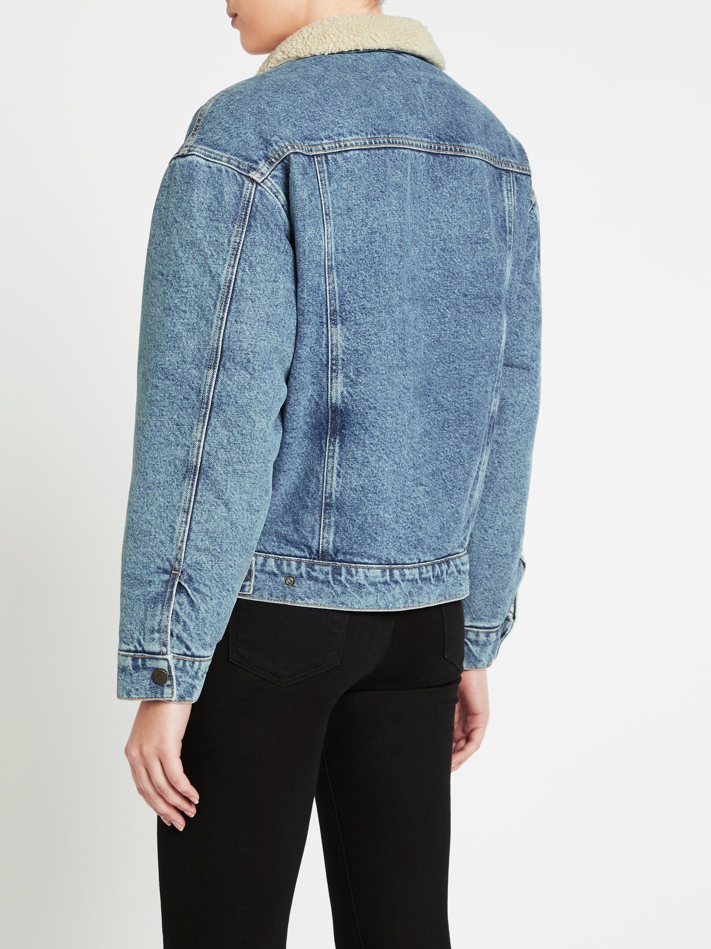 Take the much loved denim jacket into winter with the American Vintage Wipy Denim Jacket in Stone Salt & Pepper. With a classic blue denim outer and super warm faux shearling inner this must have piece features a centre front opening with snap button closure and is finished with breast and side pockets. Wear over a light knit with high rise black denim for easy winter style.