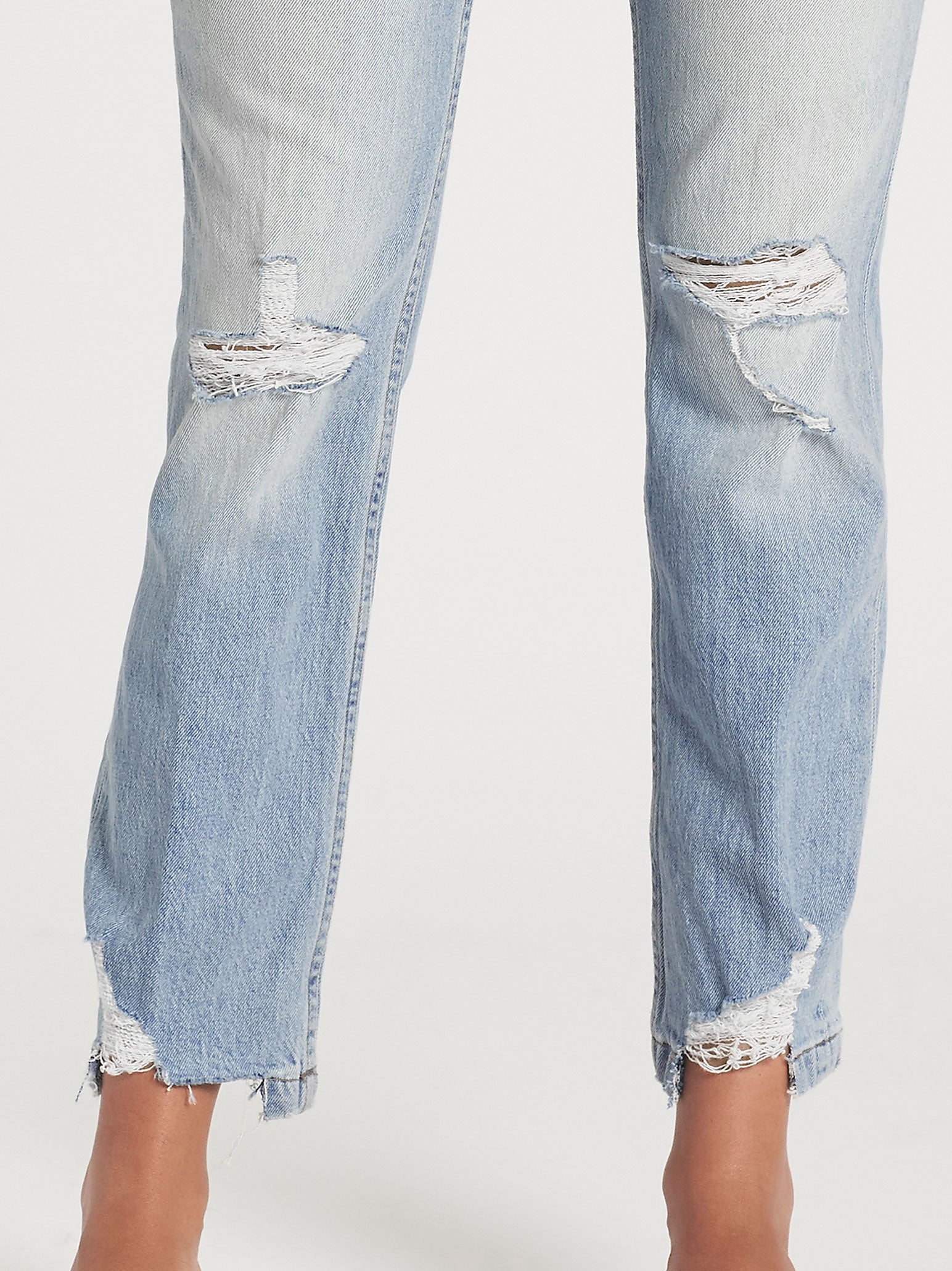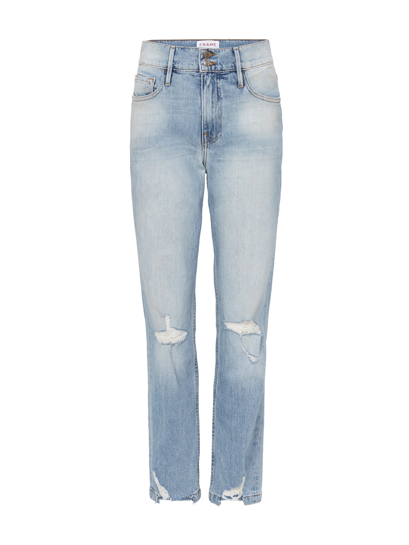 For the perfect vintage inspired jeans look no further than the Frame Le Sylvie Slender Straight Heritage in Springsteen. Constructed from a cotton blend denim these easy to wear high rise jeans feature a wider waistband with a double button finish, front and back pockets, rips at the knees and are finished with distressed hems.