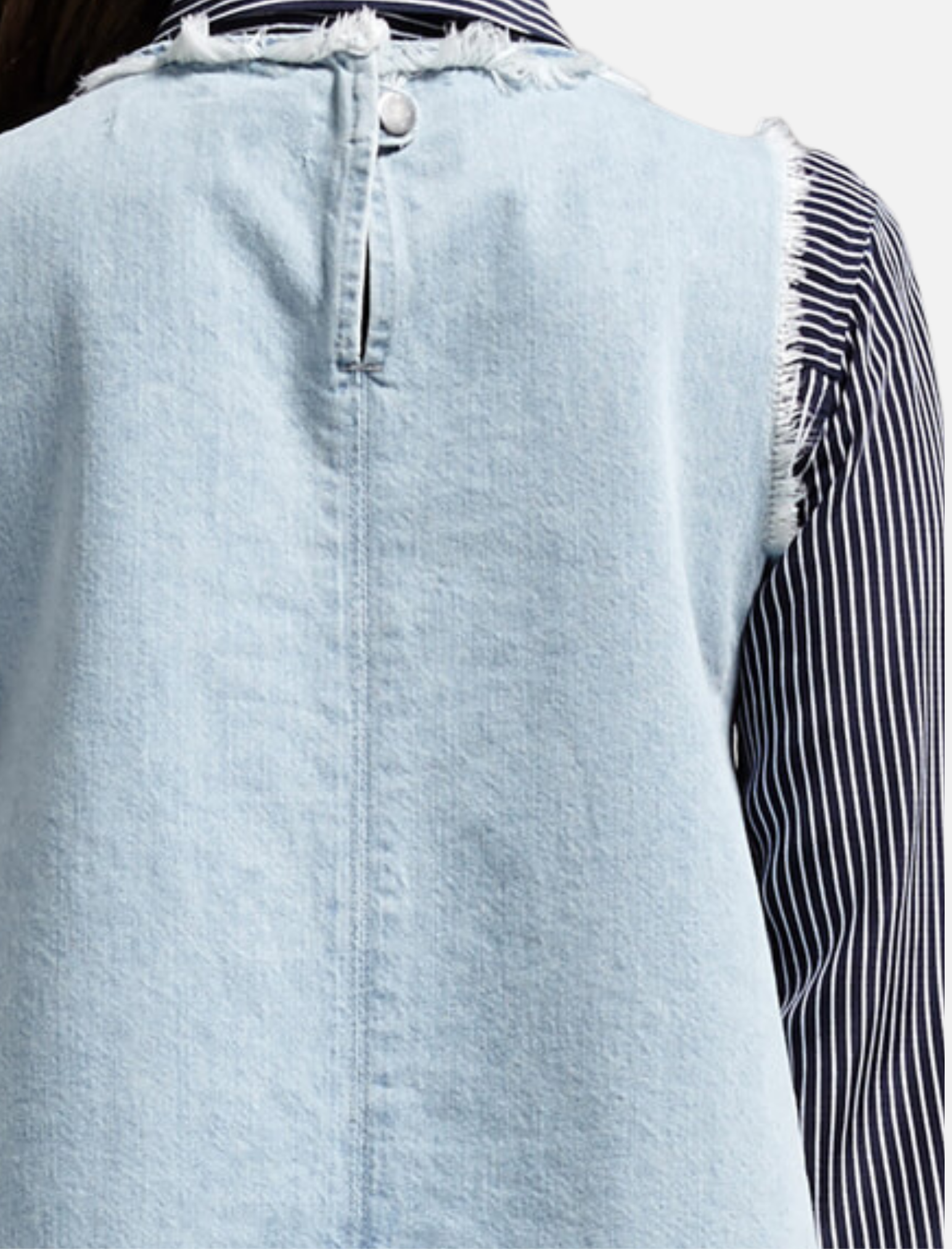 A cropped shell top, the Tayla Shell Top from J Brand‘s Fray Collection is a must have piece. Featuring fraying at the neck, armhole and hem, the fabric drapes away from the body for a loose fit. The back has a keyhole opening with snap closure.