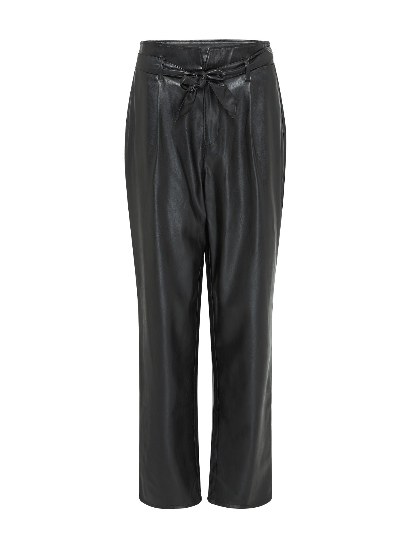 Witch meets Chic in the Paige Melila Pant in Black. Crafted in Vegan Leather and finished with a paper-bag waist, these pleated straight leg trousers demand to be paired with a tucked-in top or bodysuit. The flattering paper-bag waist is further accentuated with a v-shaped notch at the front and a self-belt. The vegan Leather fabric provides a smooth, soft and comfortable fit - perfect for riding your broom through the moonlit night.