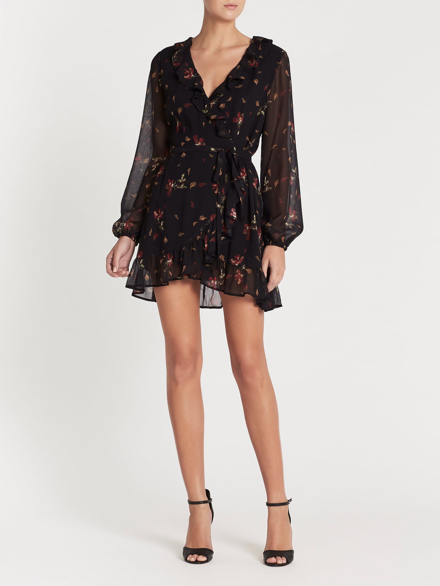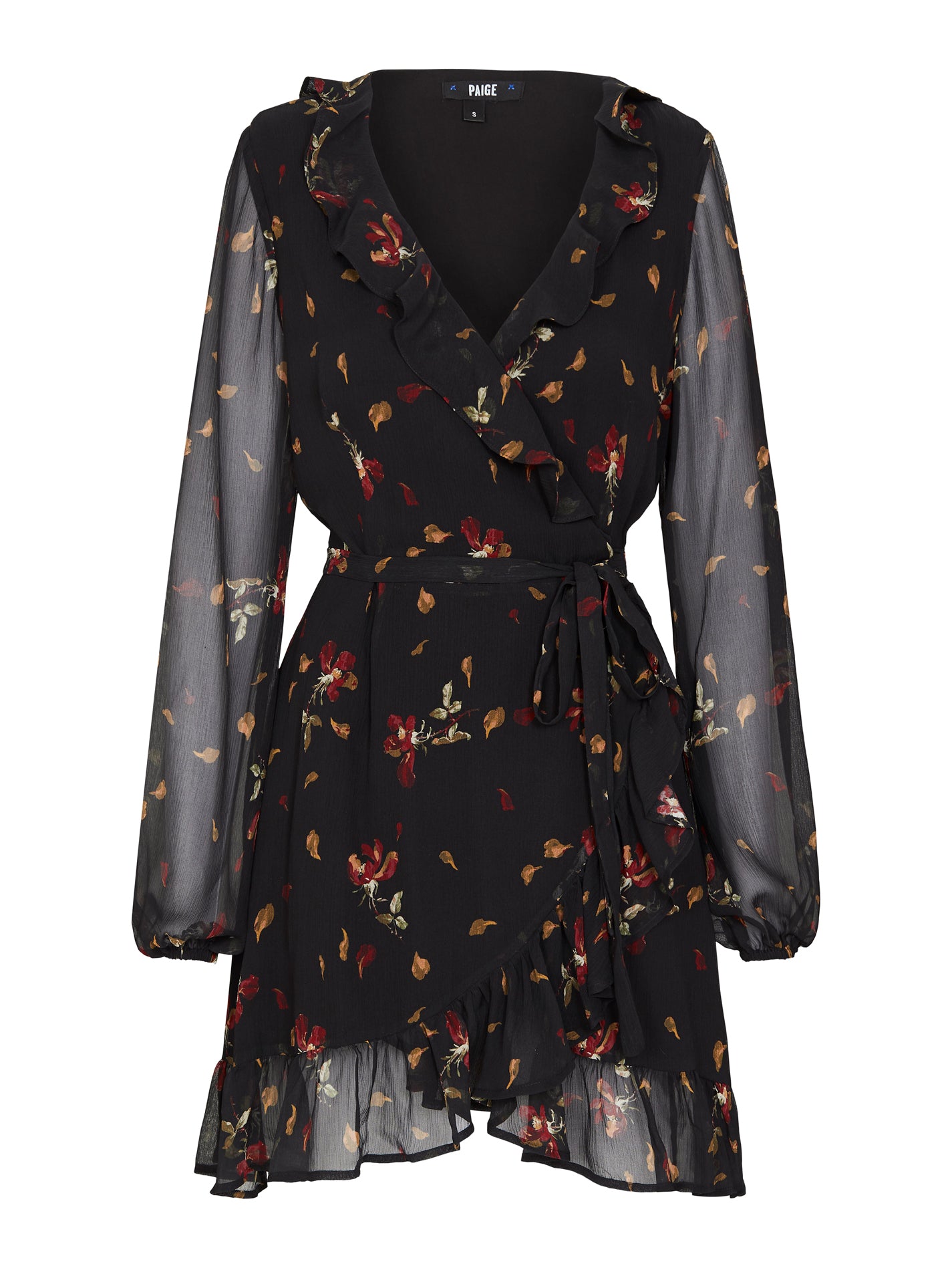 Add a little romance to your wardrobe with the Paige Shawna Dress in Black / Dark Rust Falling Floral. Constructed from a stunning floral printed silk this little adjustable wrap dress features long sleeves, a v-neckline and is finished with stunning ruffles for the perfect date night vibe.