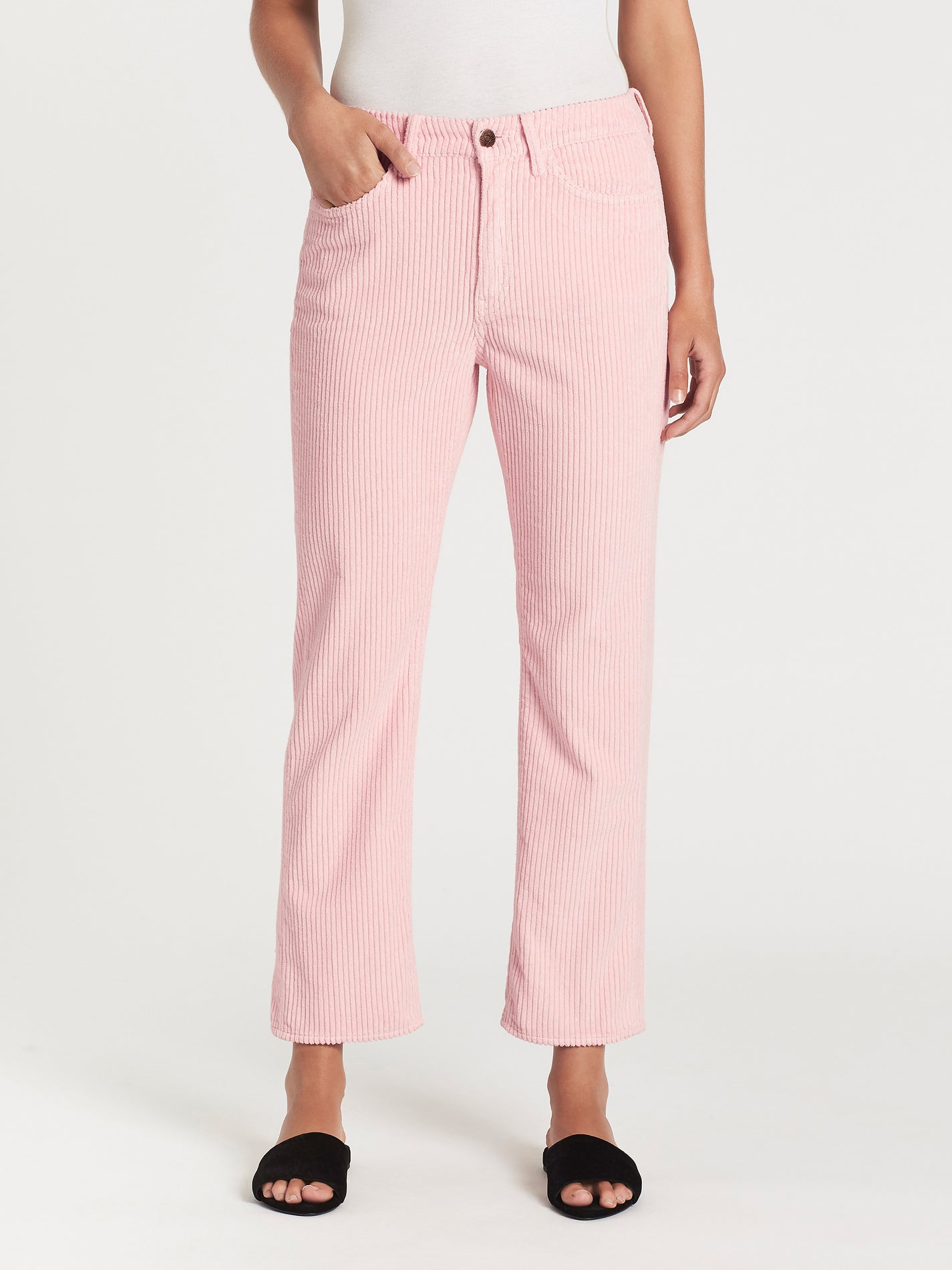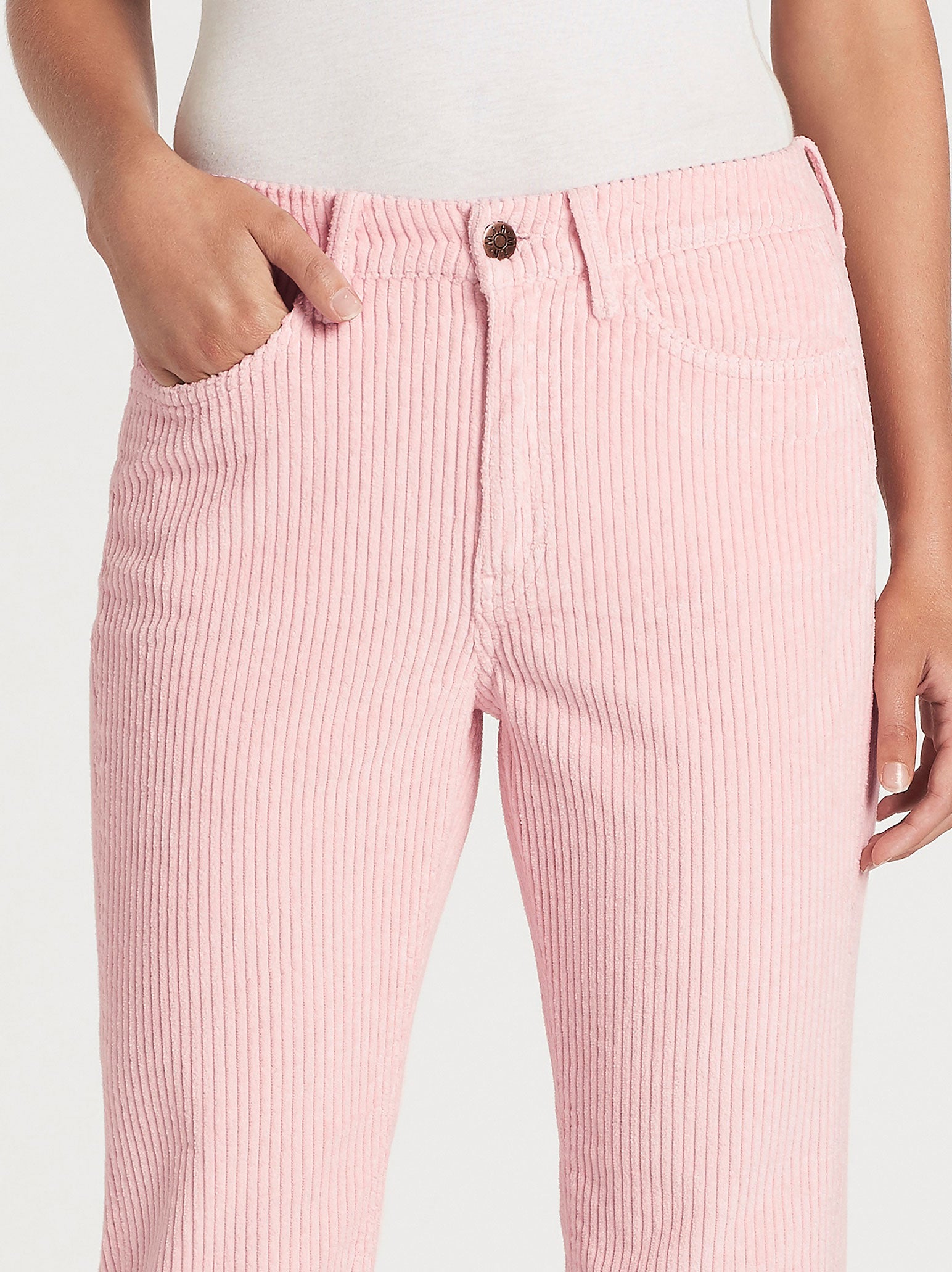 The M.i.H Jeans Daily Crop Cord Pant in Fluffy Pink are made from 85% Cotton, 15% Polyester