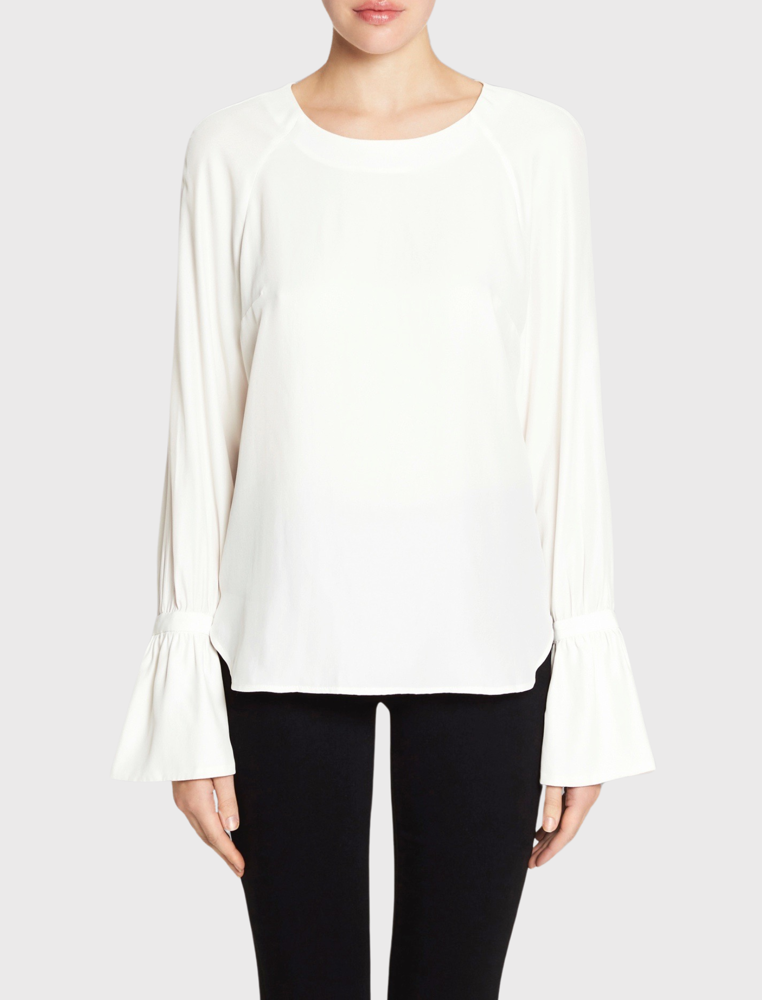 The Frame Denim Voluminous Cuff Blouse in Off White is made from 100% Silk