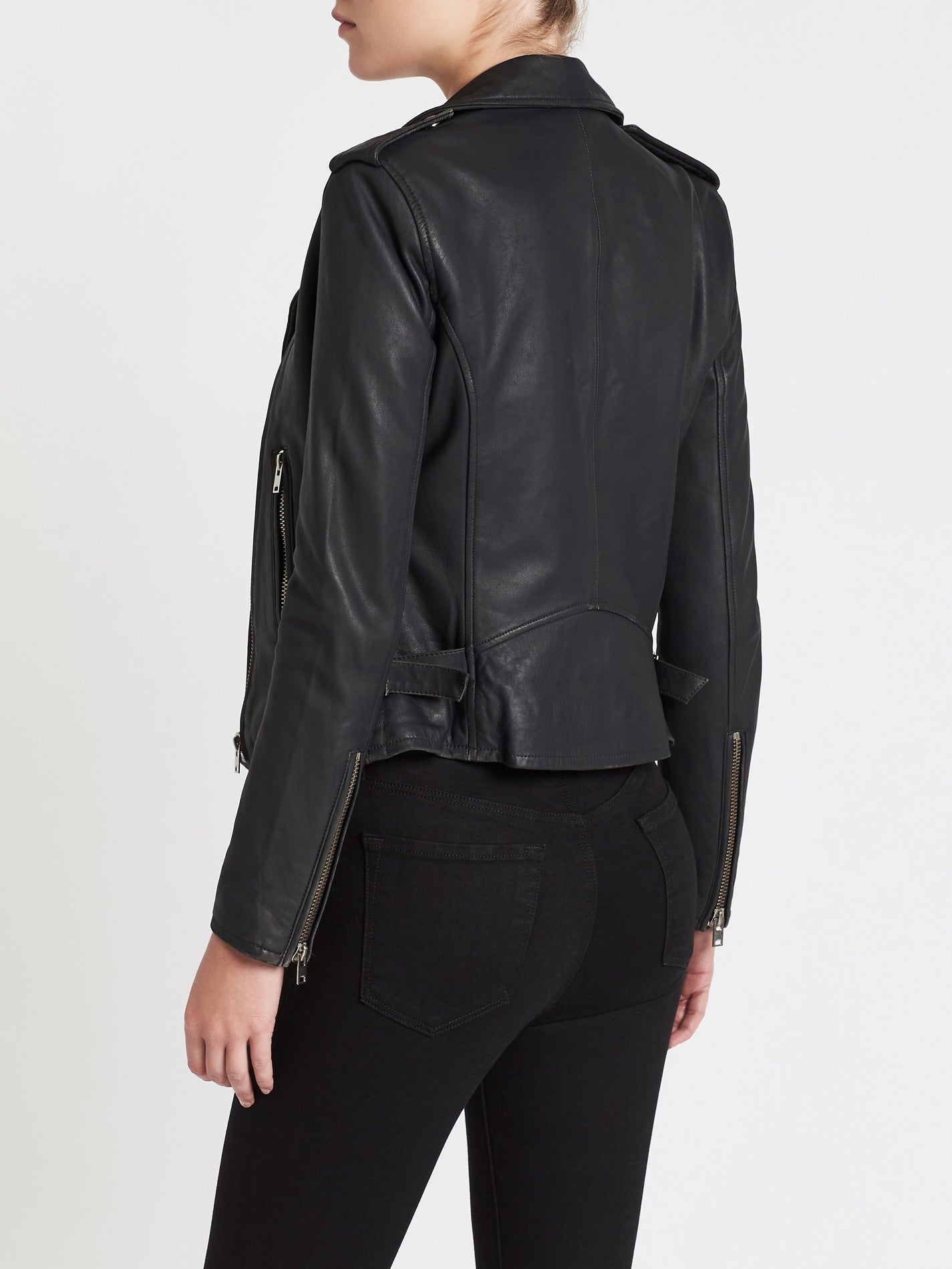 The IRO Newhan Leather Jacket in Slate Grey fits true to size.
