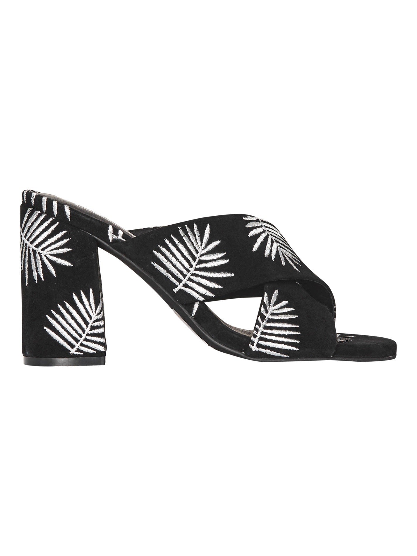 The Sol Sana Ginny Embroidery Mule in Black Palm is made from Suede Upper, Leather Inner, Synthetic Sole