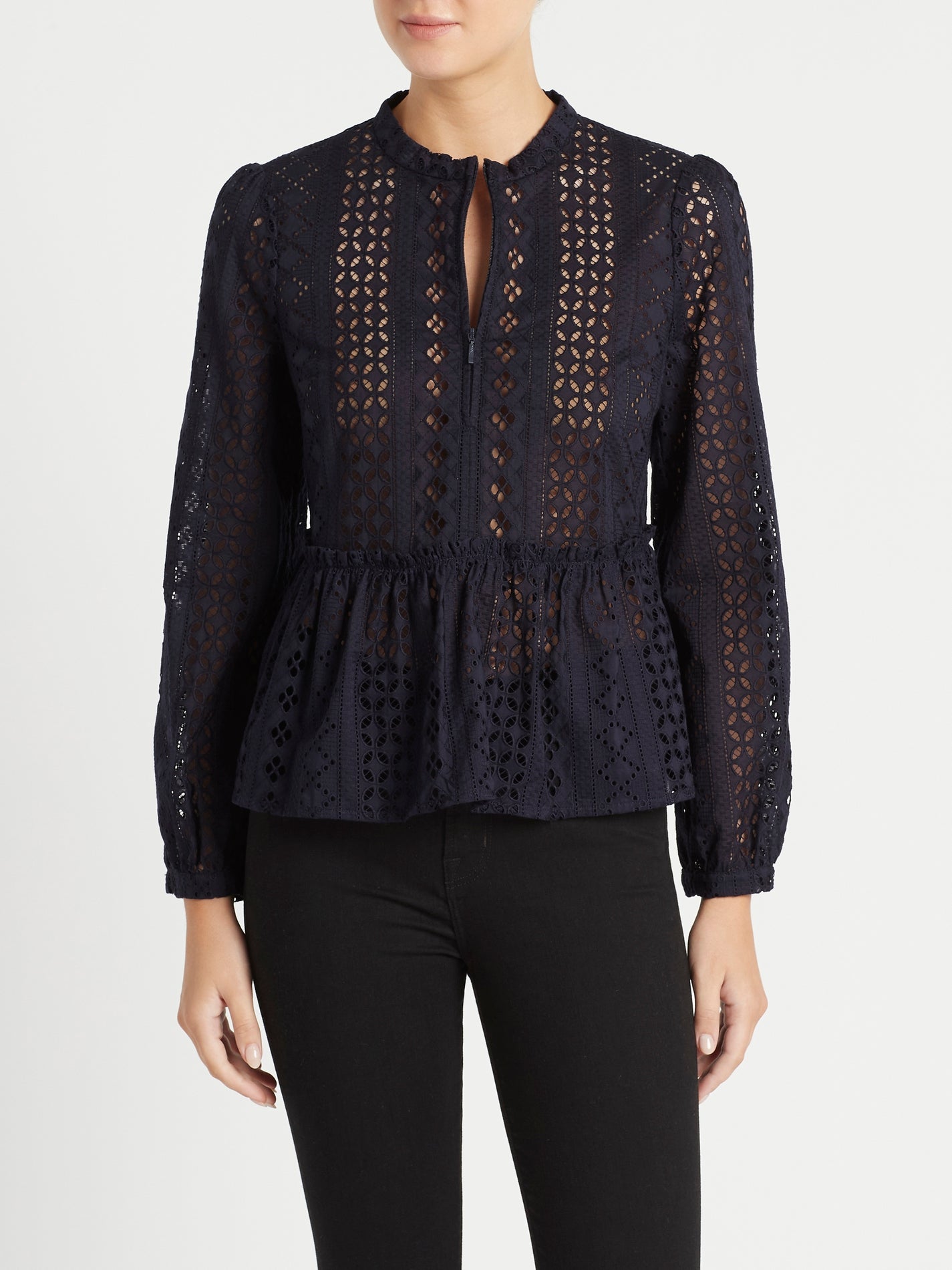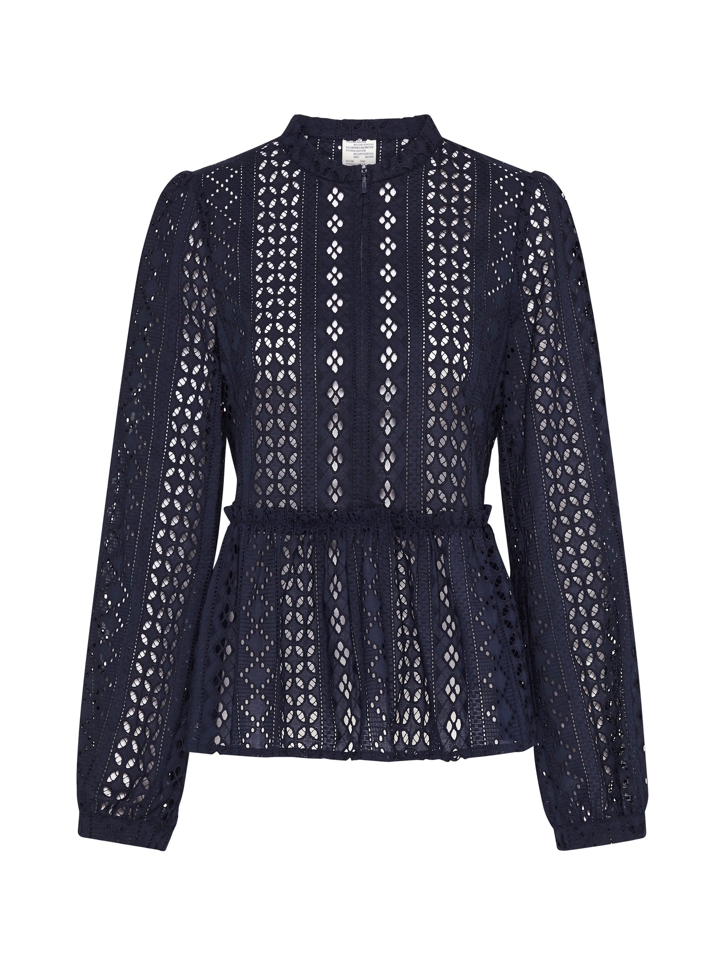 Nail effortlessly cool scandi style with the Baum Und Pferdgarten Maira Blouse in Evening Blue. Constructed from 100% cotton this long sleeve blouse features puffed sleeves with subtle gathering at the shoulders, a subtle zip at the centre front and ruffling along the peplum waist for a flattering finish.