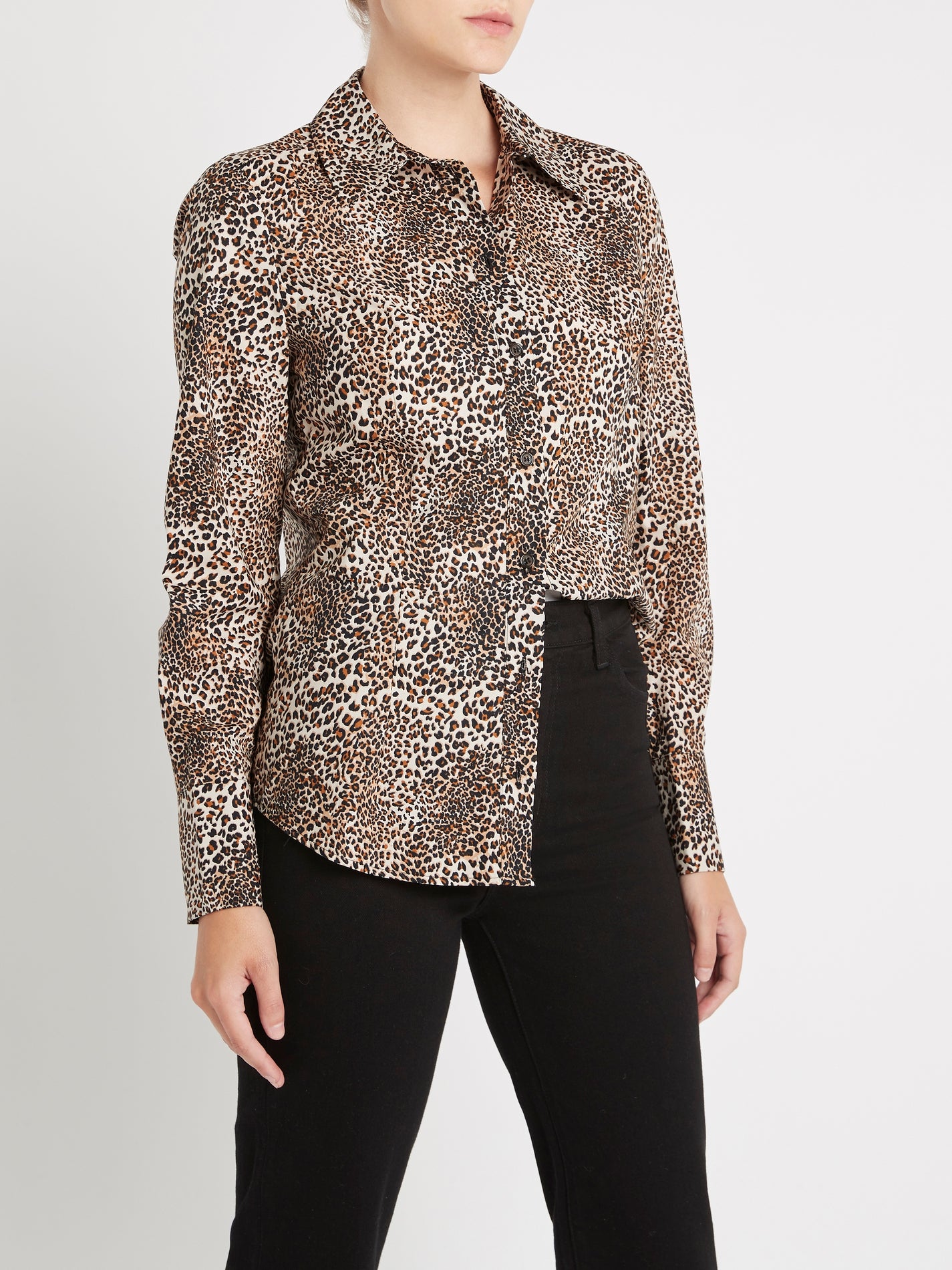 The BAUM UND PFERDGARTEN Myrah Shirt in Mini Leo print is a fitted shirt with three-button cuffs and a round hem, made from organic cotton. This crisp fitted style is the perfect for work or fun.