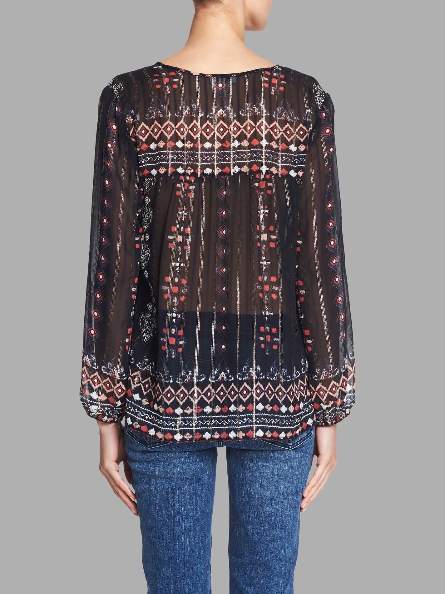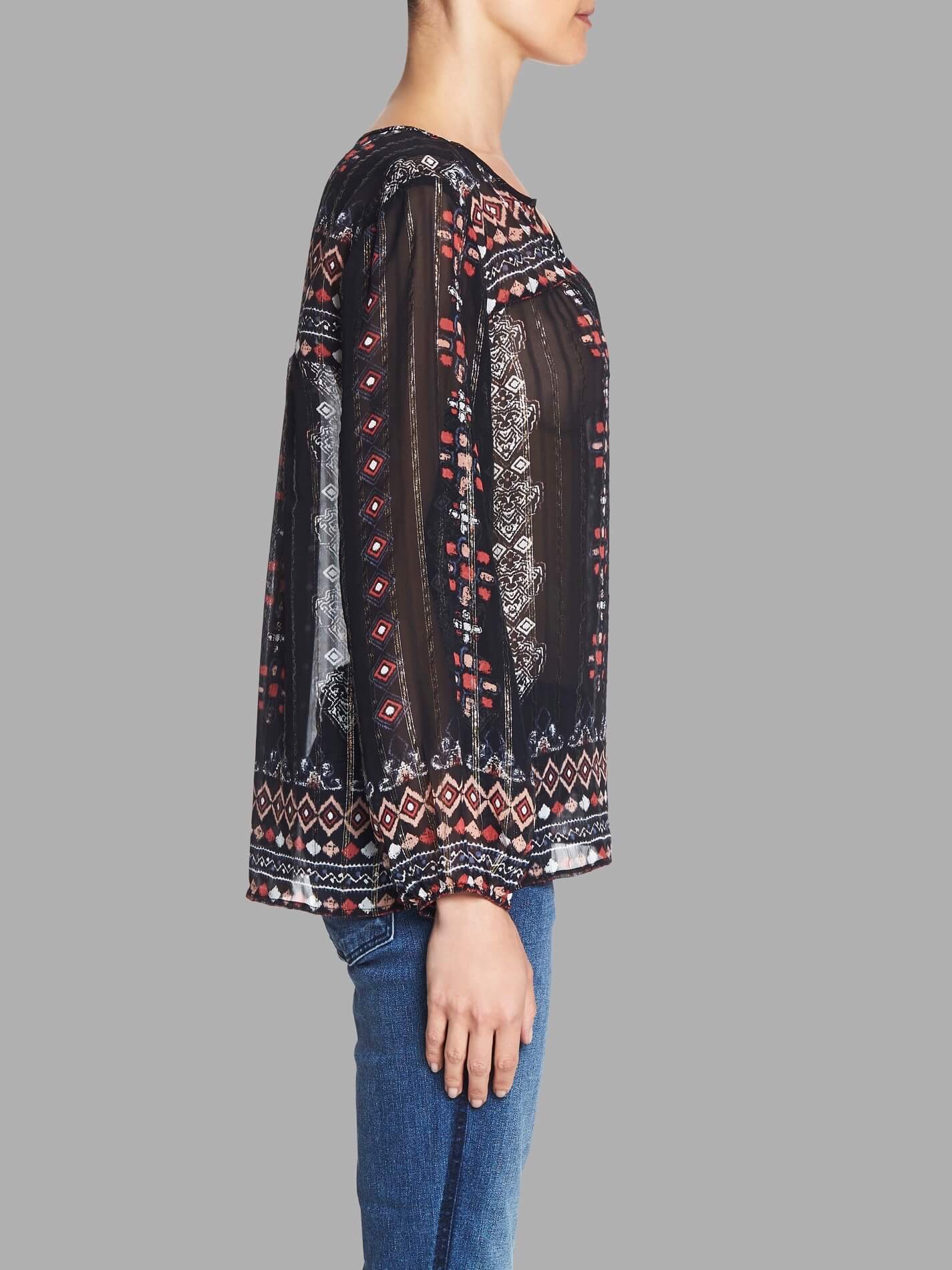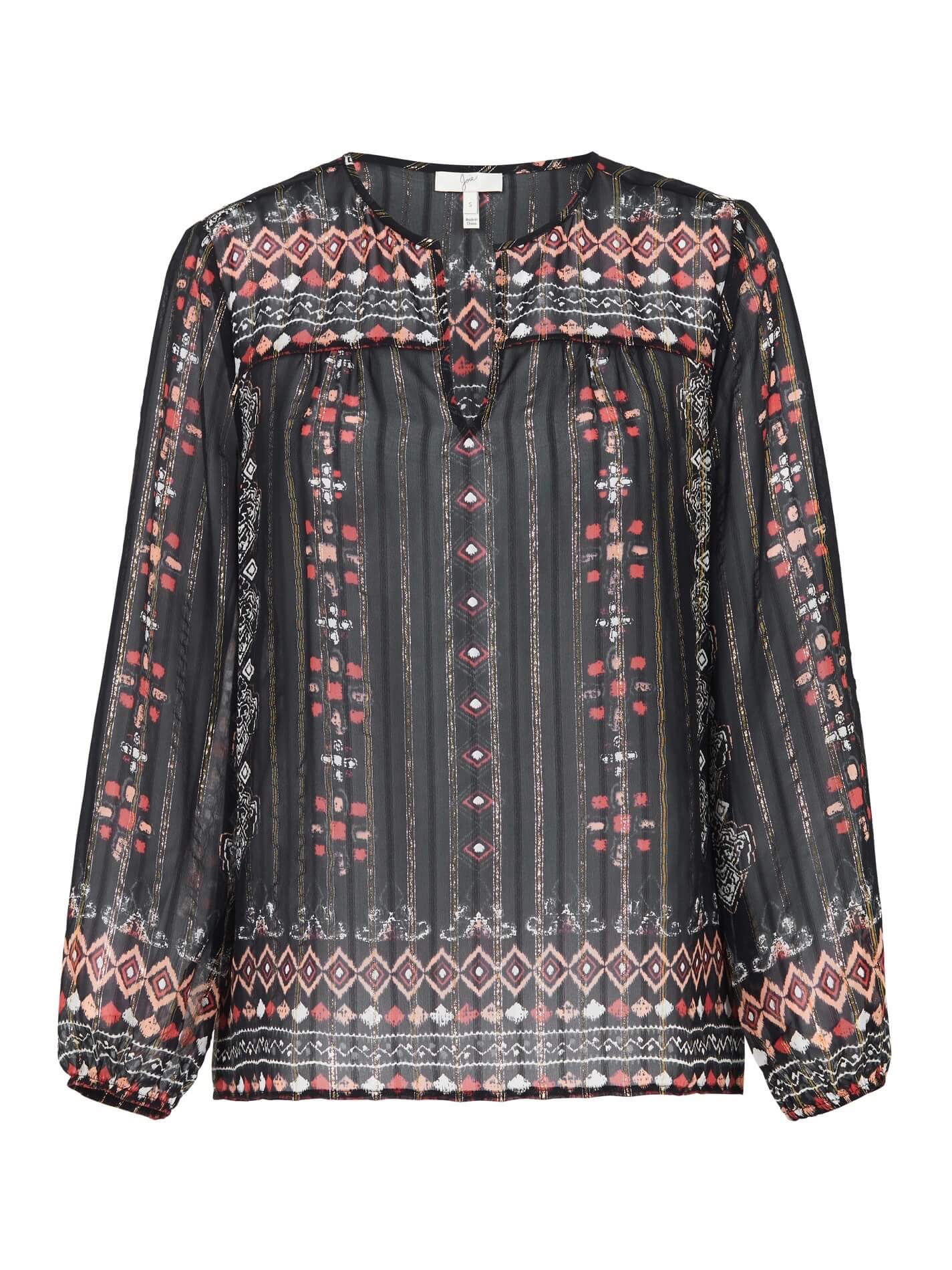 Get ready to make a statement with the Maguie Top by Joie. This sheer black top is the epitome of bohemian chic, featuring a beautiful and unique design that sets it apart from anything else in your wardrobe. The pullover style is comfortable and easy to wear, with bracelet sleeves and a split V-shaped neckline. The yoked back adds a touch of elegance, making this top perfect for any occasion. Whether you're dressing up for a night out or keeping it casual for a weekend brunch, the Maguie Top is sure to make a statement. So why wait? Shop now and elevate your wardrobe with this beautiful and stylish bohemian top from Joie.