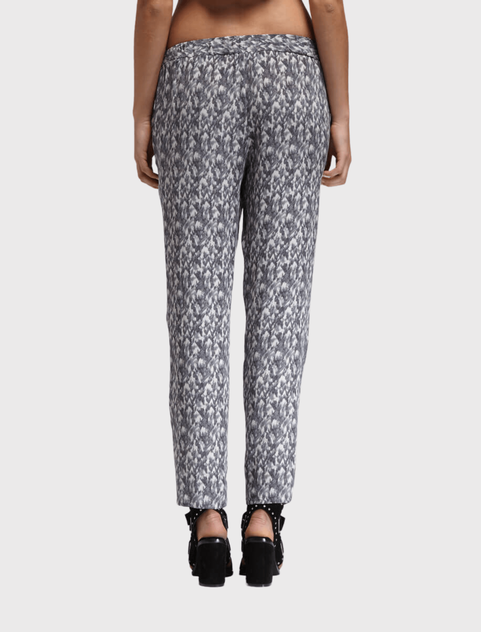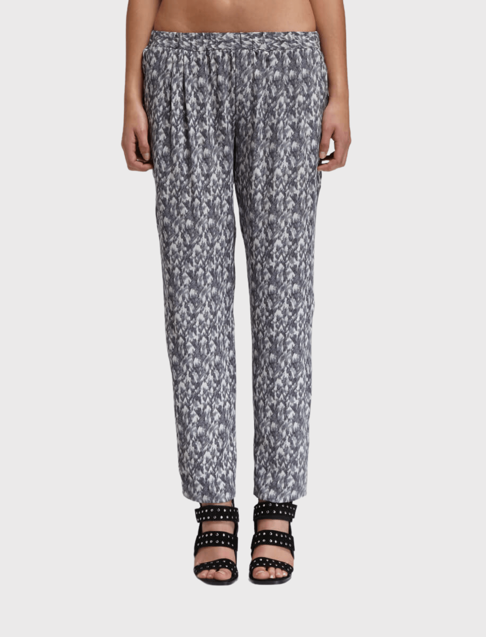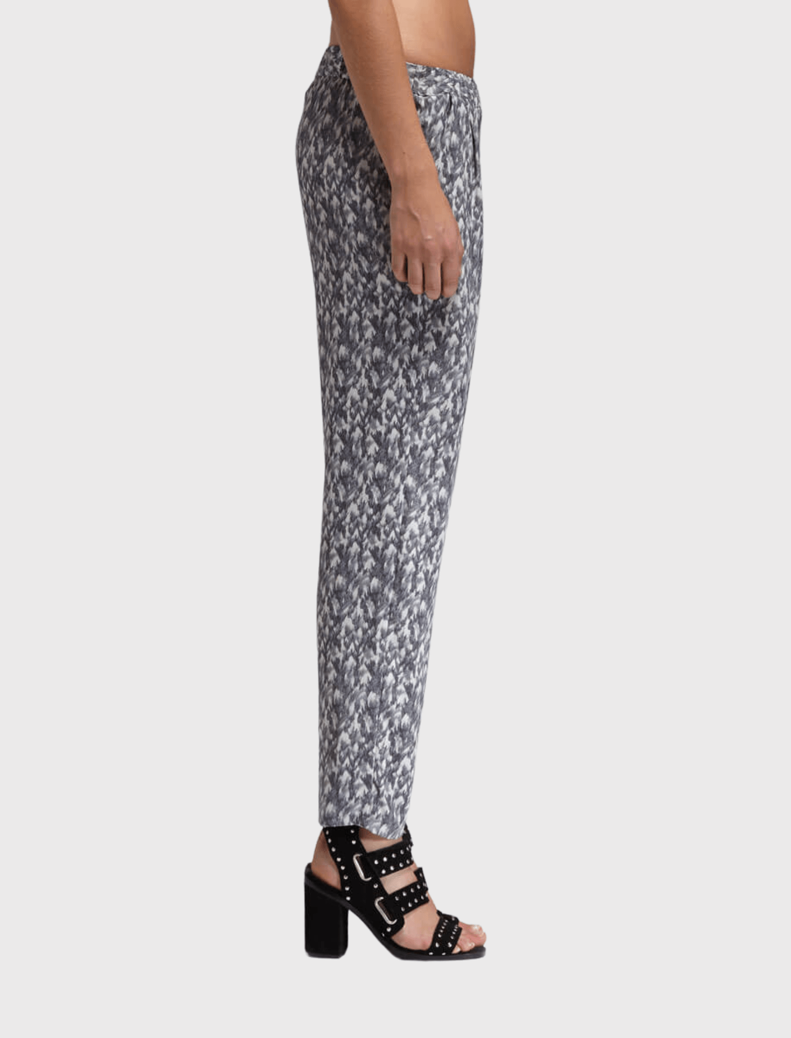 The Gage Pants by Joie are a pair of printed silk crepe pants, here in a monochromatic design. Featuring front pleats, an elasticated waistband and front slant pockets, they have have a mid rise and a straight leg.