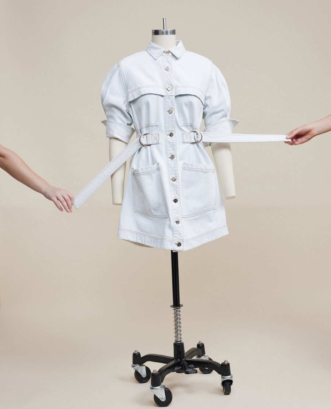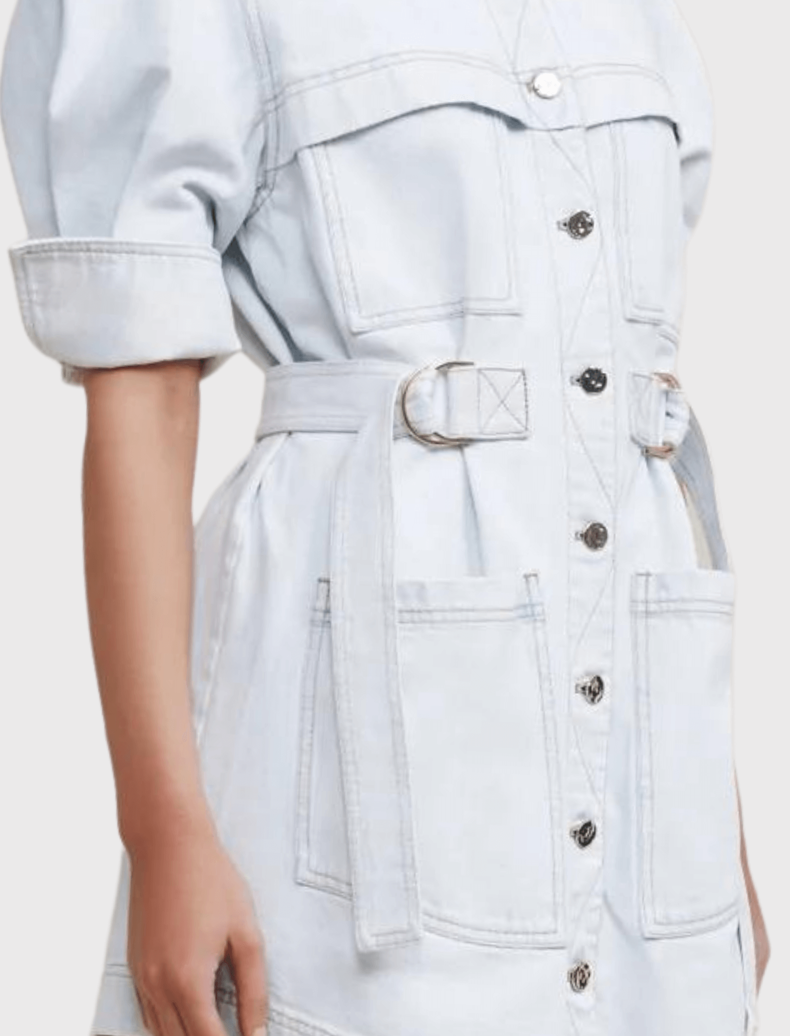 The Acler Holmes Short Sleeve Denim Shirt Dress in Cloud Blue is made from 100% Cotton