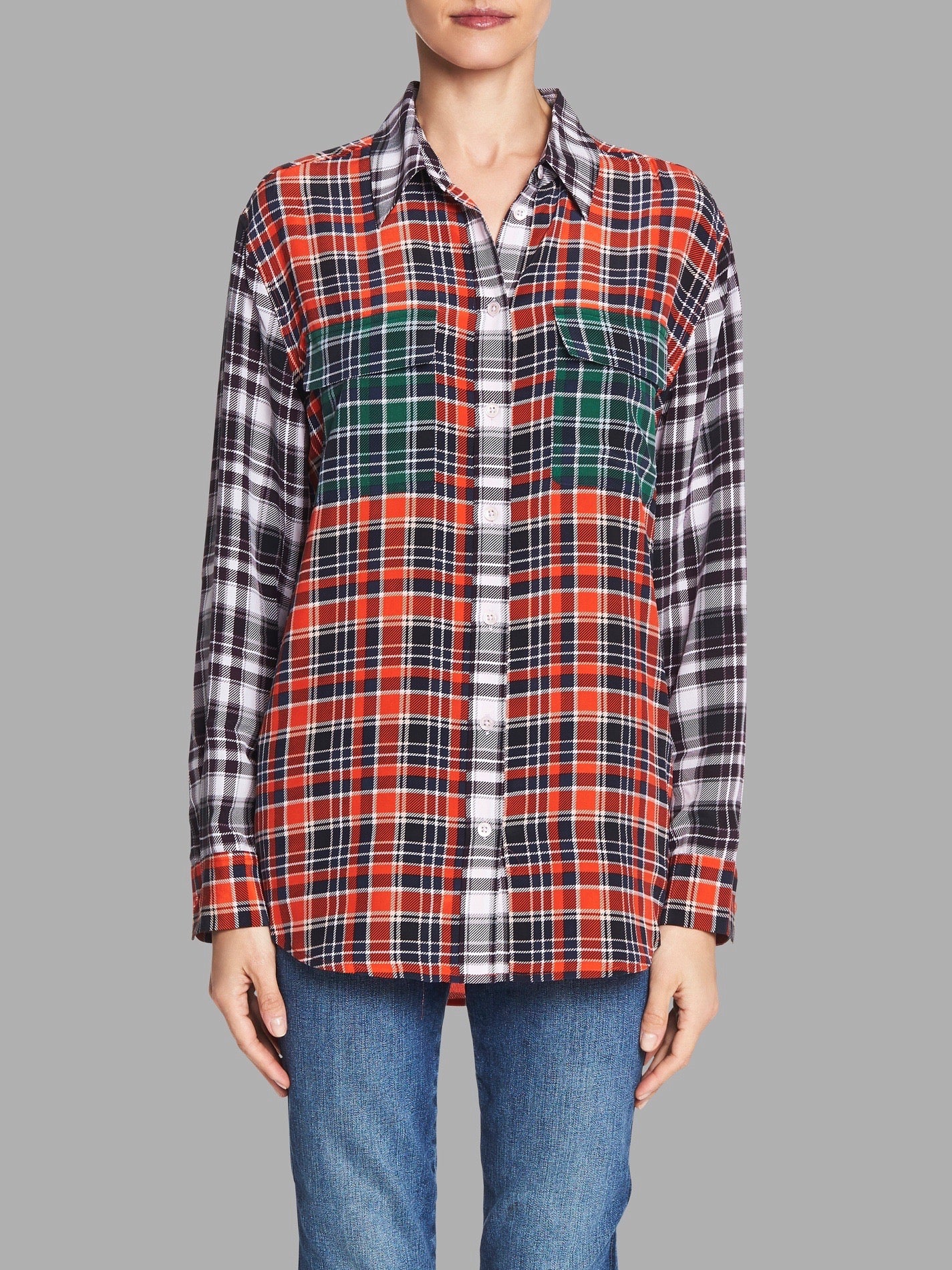 The Equipment Signature Shirt in Sunfire Multi is a luxurious take on the classic flannel shirt. Constructed from an ultra soft silk, this button down shirt has a roomy finish and features front flap chest pockets, a curved hemline and classic cuffed sleeves. The mixed plaid motif makes this the perfect edgy piece to add to your wardrobe.