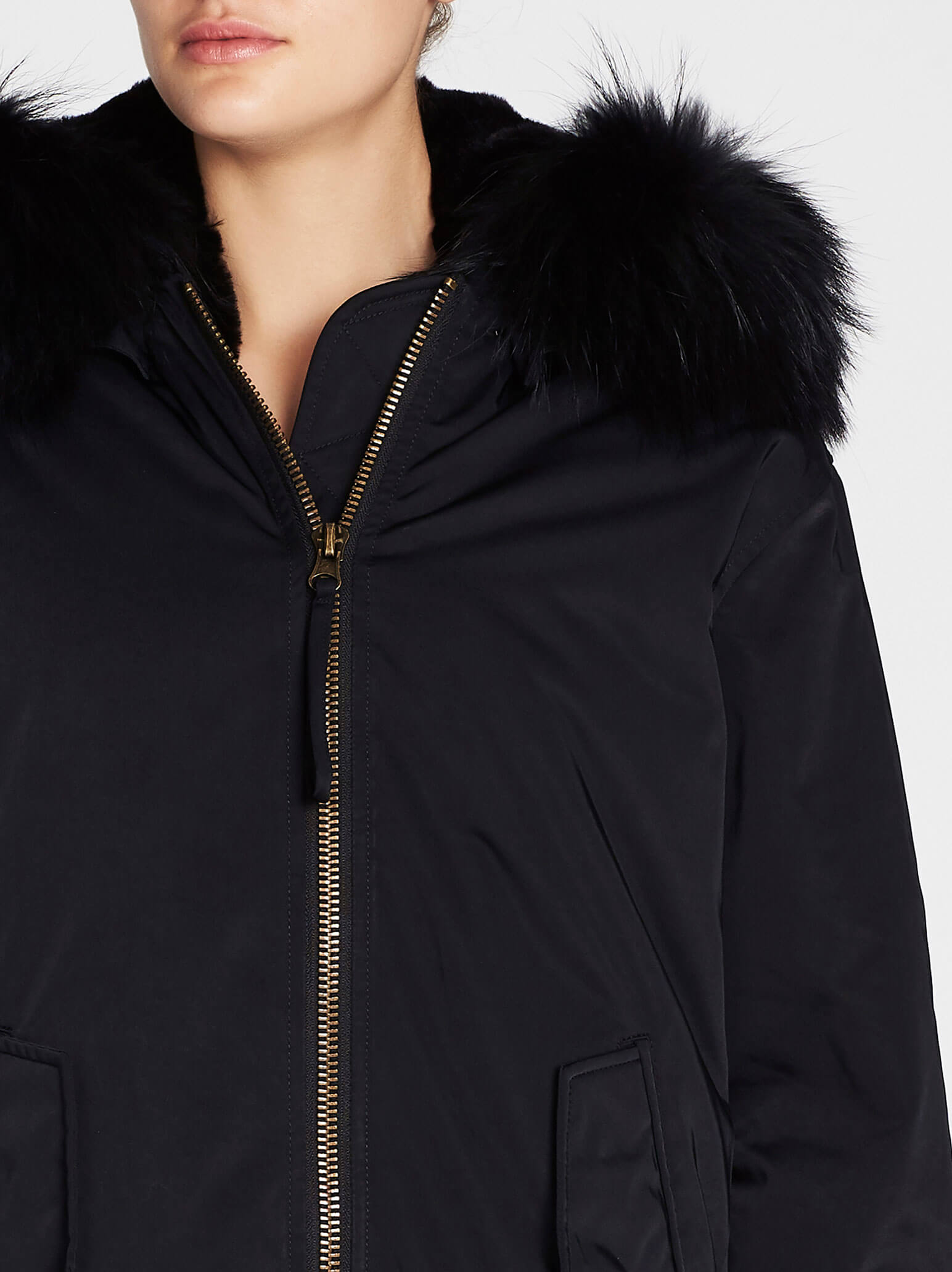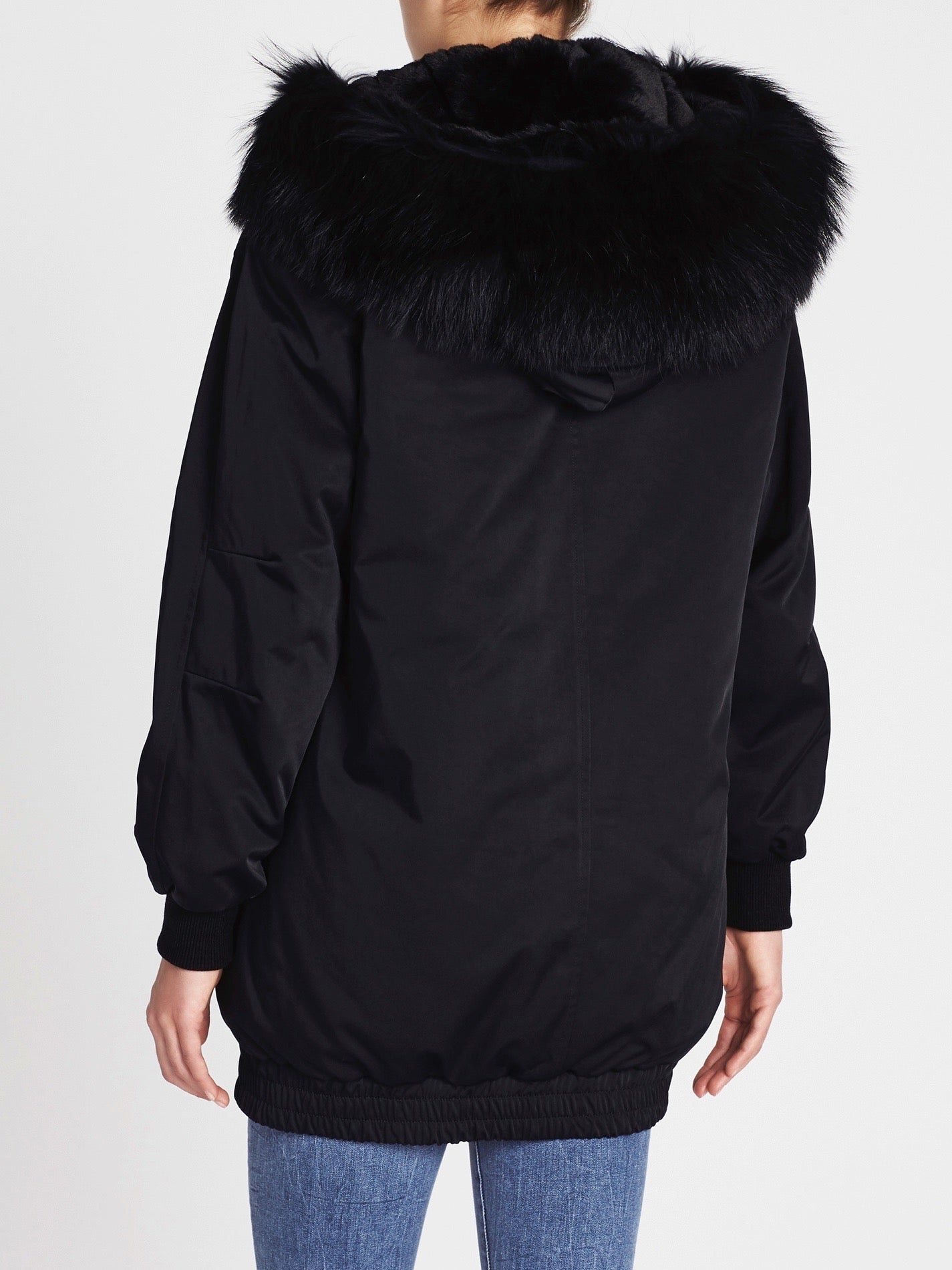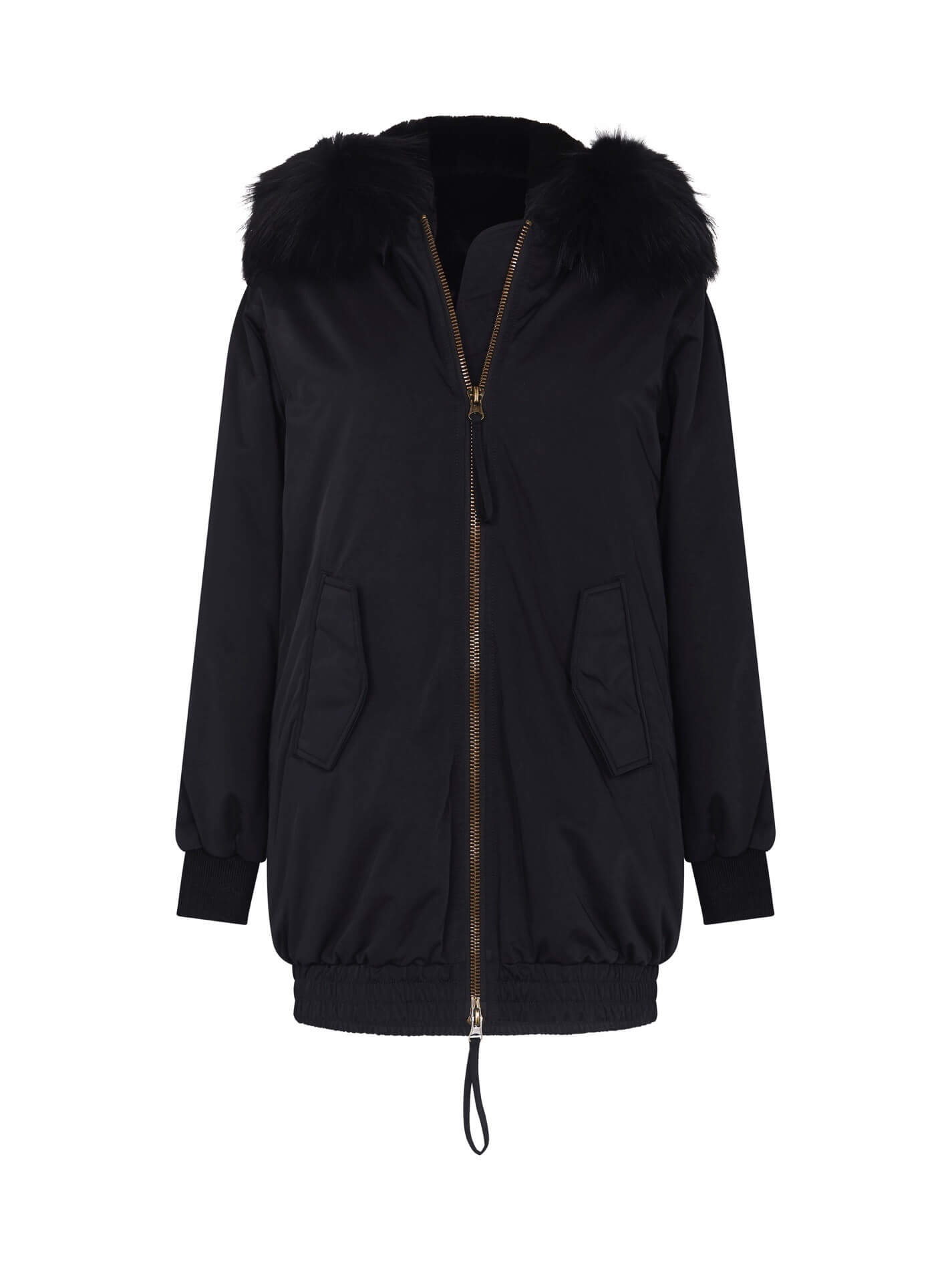 You'll be so snug this winter with the H Brand Carter jacket. Constructed from a fast drying polyester with a racoon fut trim on the detachable hood and a fur inner this long bomber jacket features a centre front opening with metal zip fastening, side pockets and an elasticated hem. The fur inner is also detachable making this piece the perfect tran-seasonal must have.