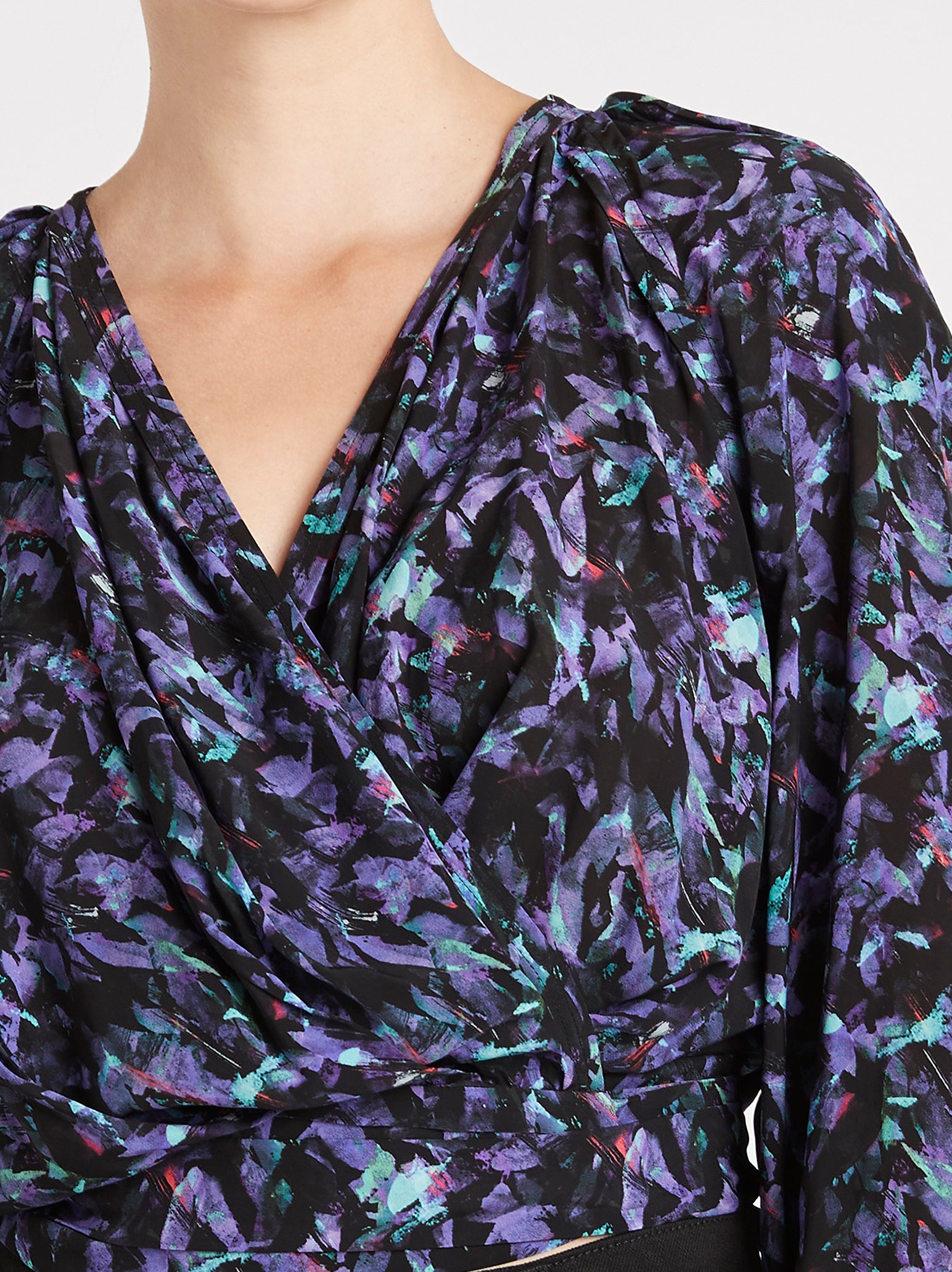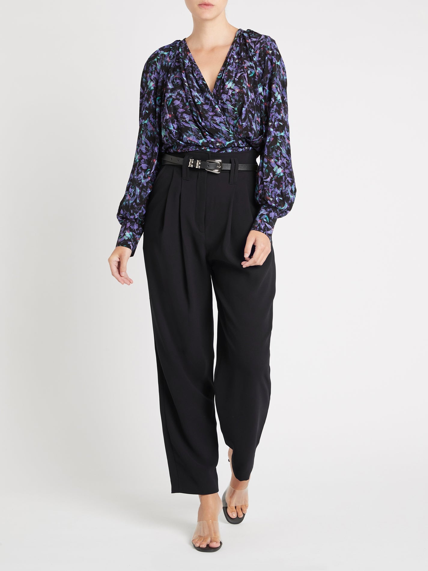 Take things to the next level with the Iro Azza Top in Black Multico. Constructed from 100% viscose this wrap top features long sleeves, a v neckline and a bold print inspired by 80's graphics. Team with high waisted black trousers and a classic belt for easy style that will take you from the office to the bar.