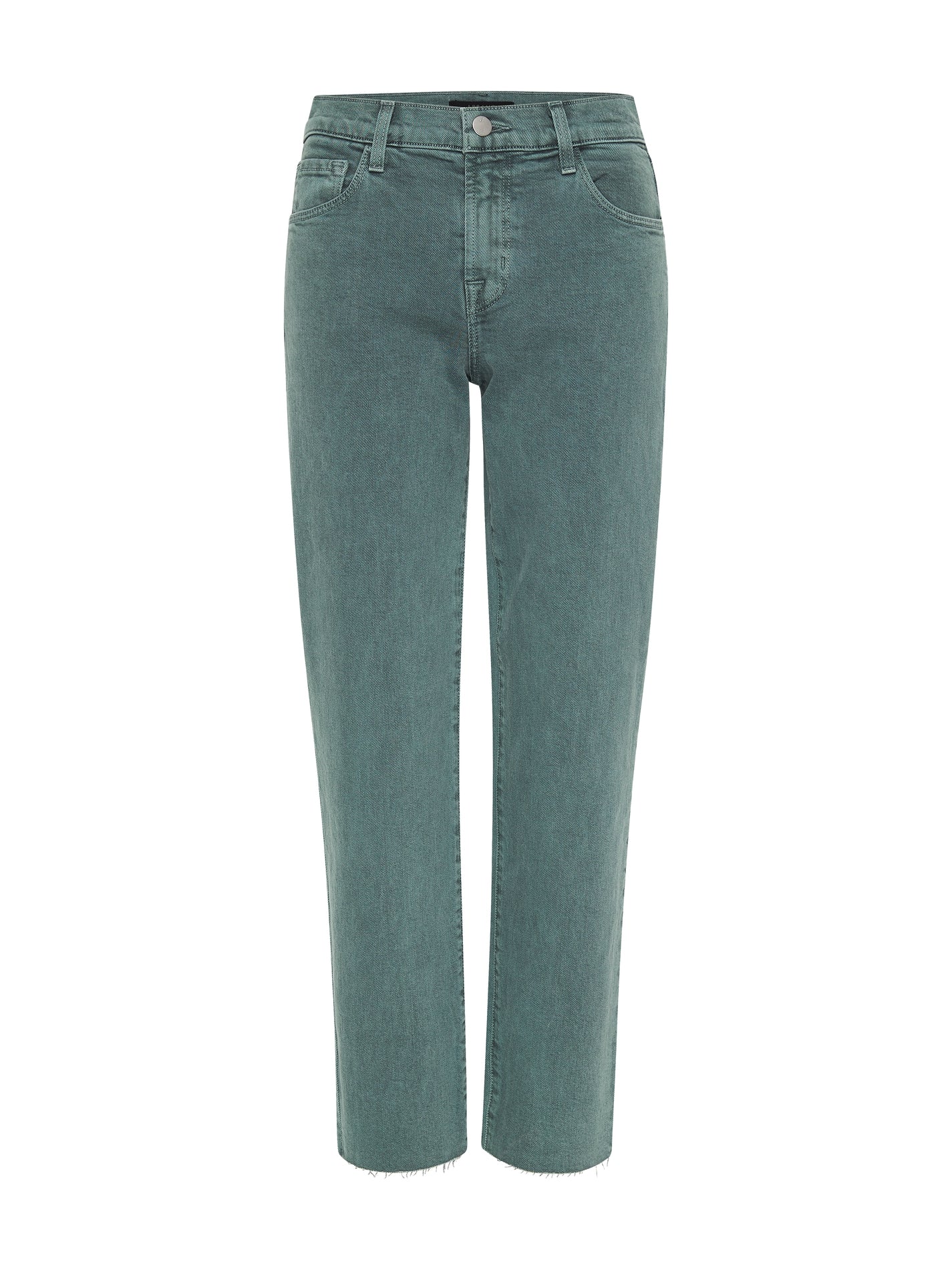 J brand deliver and update to the much loved 811 skinny fit jean with the Adele Mid Rise Straight Jean in Dakota Distress that you'll love to wear to work and beyond. Constructed from comfort stretch denim, these mid rise straight jeans feature a stunning faded green-grey wash with a classic 5 pocket design and is finished with silver metal hardware detailing. Pair with a strong white cotton shirt boots and blazer for mid week office attire or team back with a racer back tank for the ultimate off duty look.