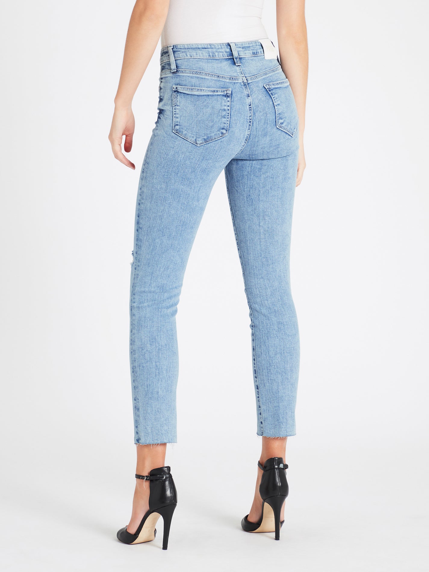 Lighten up this season with the Hoxton Slim Jean in Aloha Destructed by Paige. Constructed from a comfortable stretch denim and in a slim and flattering fit with raw hem detailing, the Hoxton Slim Jean are the ultimate must-have pair for your denim collection.
