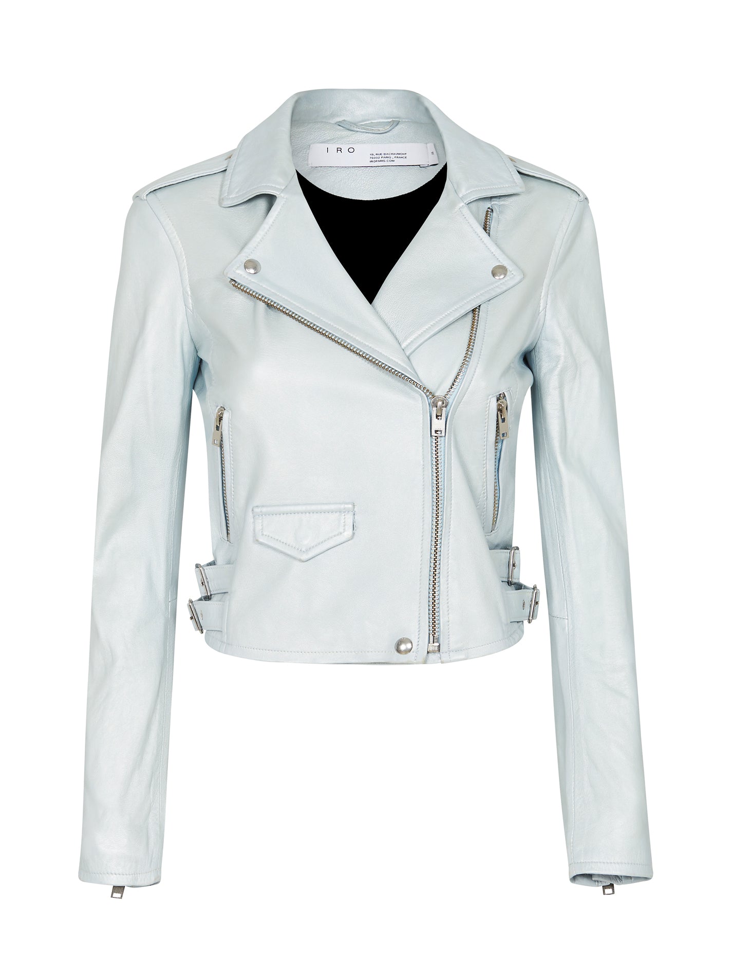 The IRO Ashville Leather Jacket in Azur Blue is made 100% Lamb Leather/ Lining: 100% Polyester