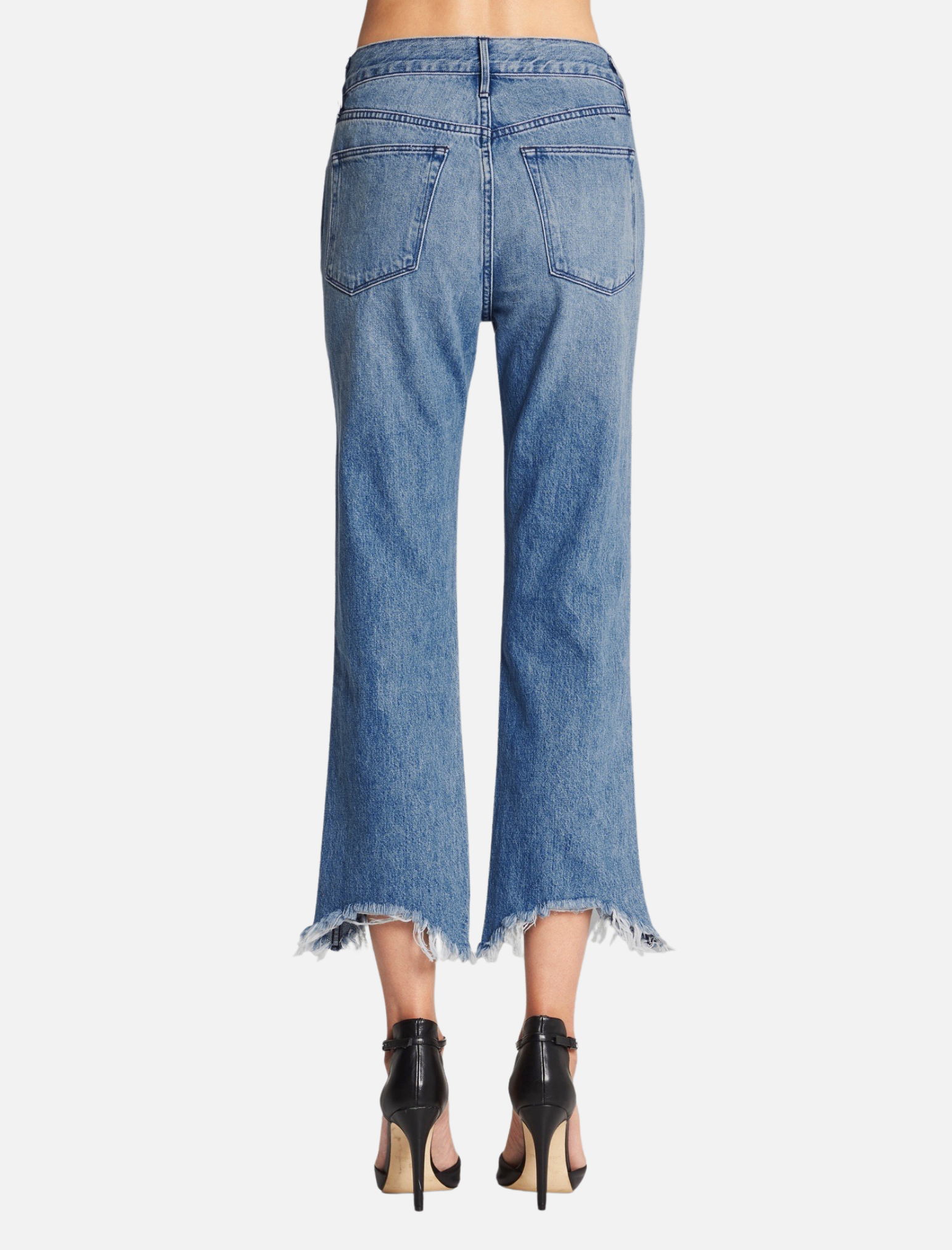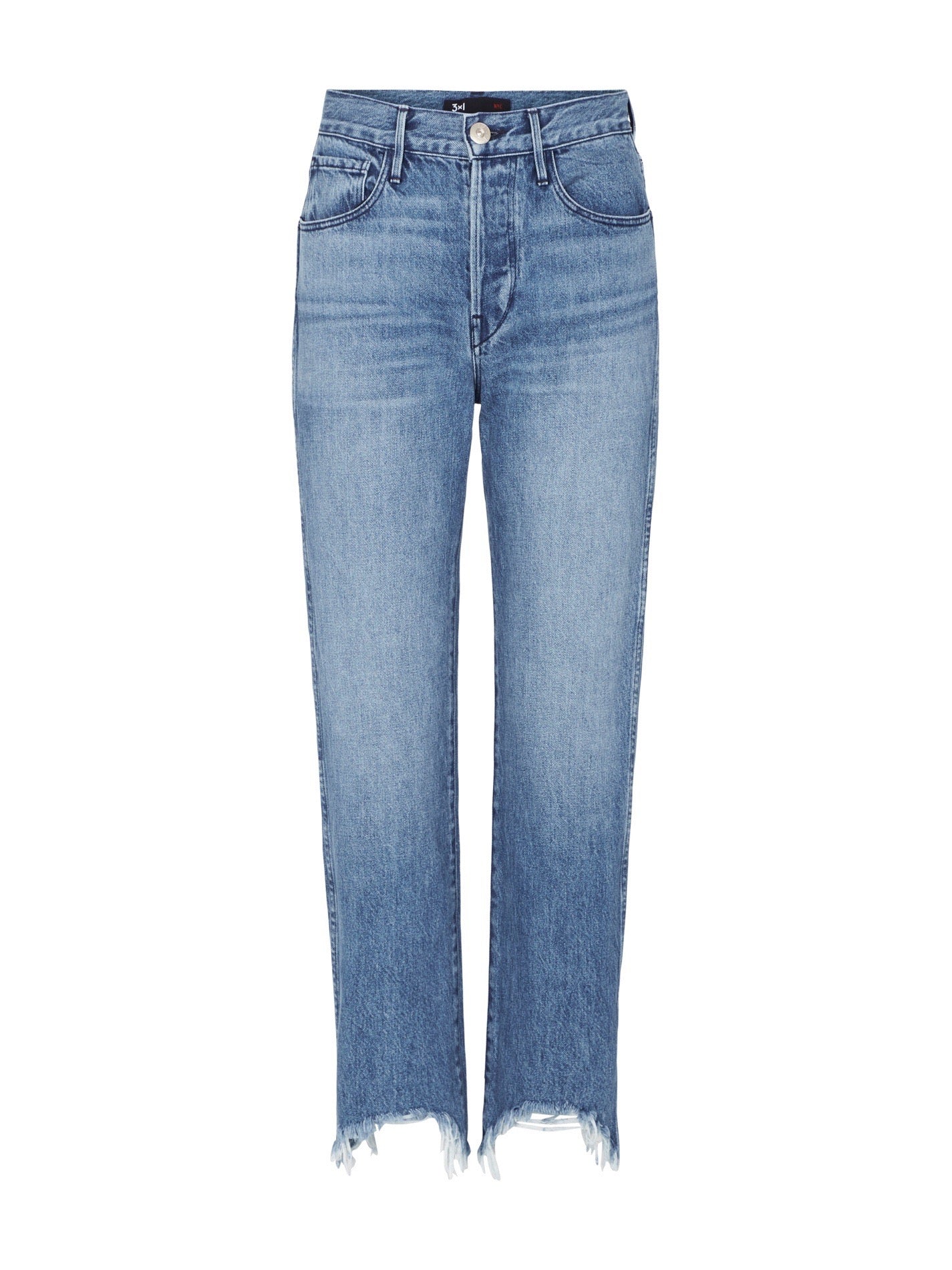 For the perfect blue jeans with a modern twist look no further than the 3X1 Shelter Austin Crop in Byrd. Constructed from 100% cotton these faded blue high rise jeans feature 5 pockets, button fly with silver hardware and are finished with un-even raw frayed cuffs for an ultra cool hand cut feel. Team yours with your favourite strappy heel or bootie and a simple black blouse.