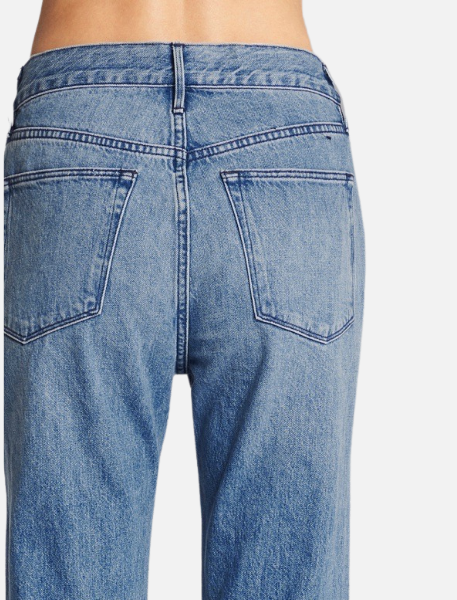 The 3X1 3w Shelter Austin Crop in Byrd is a rigid fit jean we recommend taking 1 size up