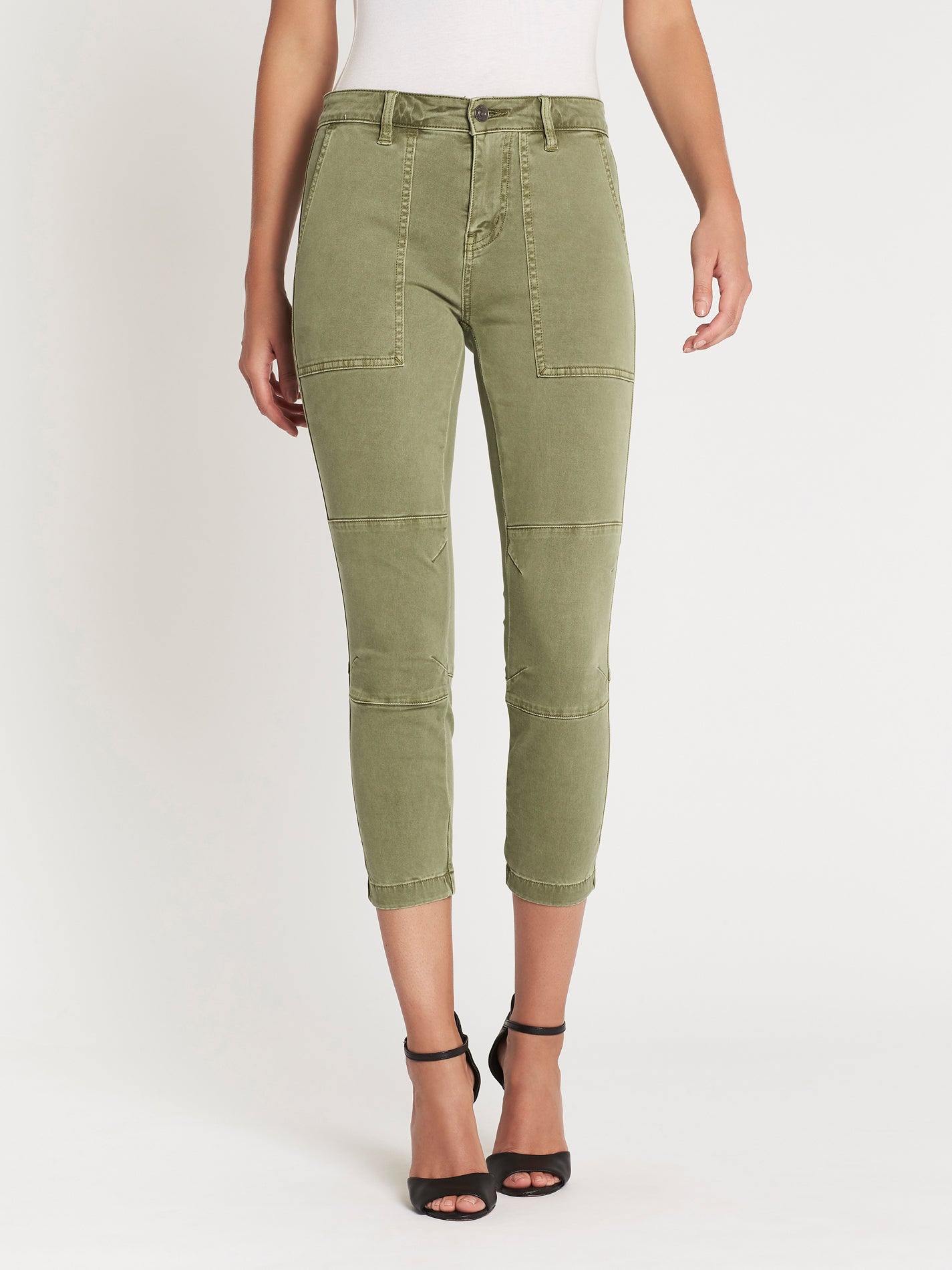 The Weslan Pant by Current/Elliott in the washed out Army Green shade are the perfect weekend staple utility pant when paired with a crisp white sneaker and simple tee. The Weslan Pants feature slanted pockets and graze over the hips with a skinny leg fit to flatter your pins for days.
