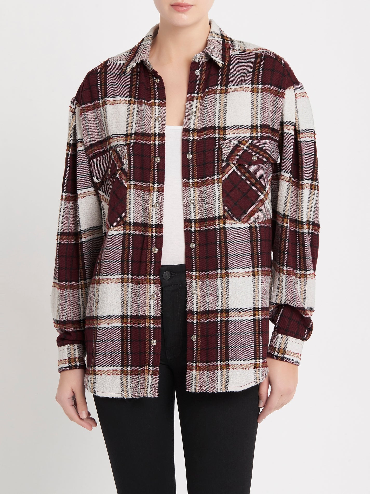 The IRO Hatik Shirt in Red Multico is an oversized fit