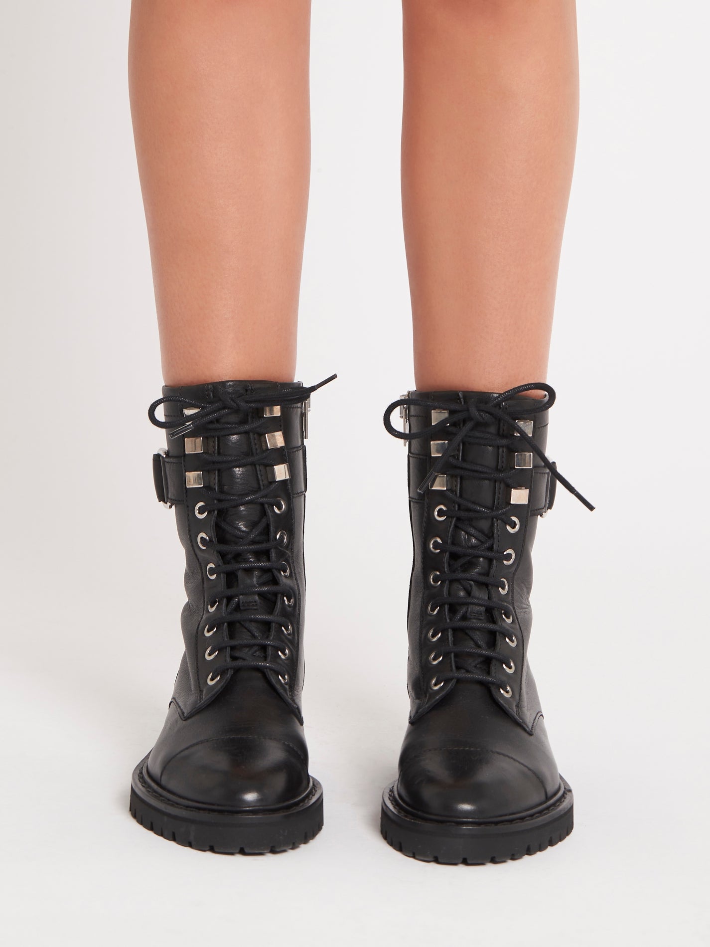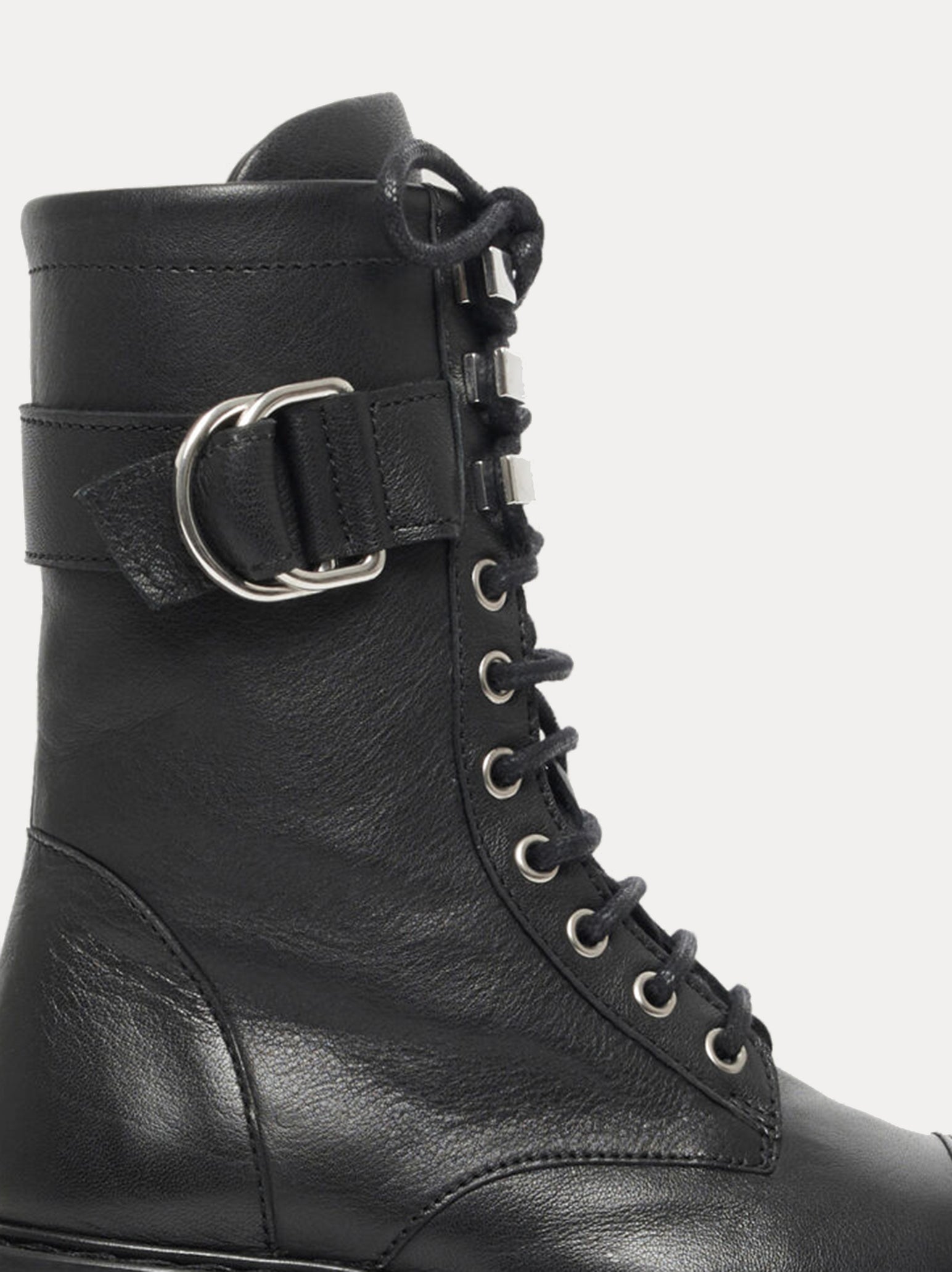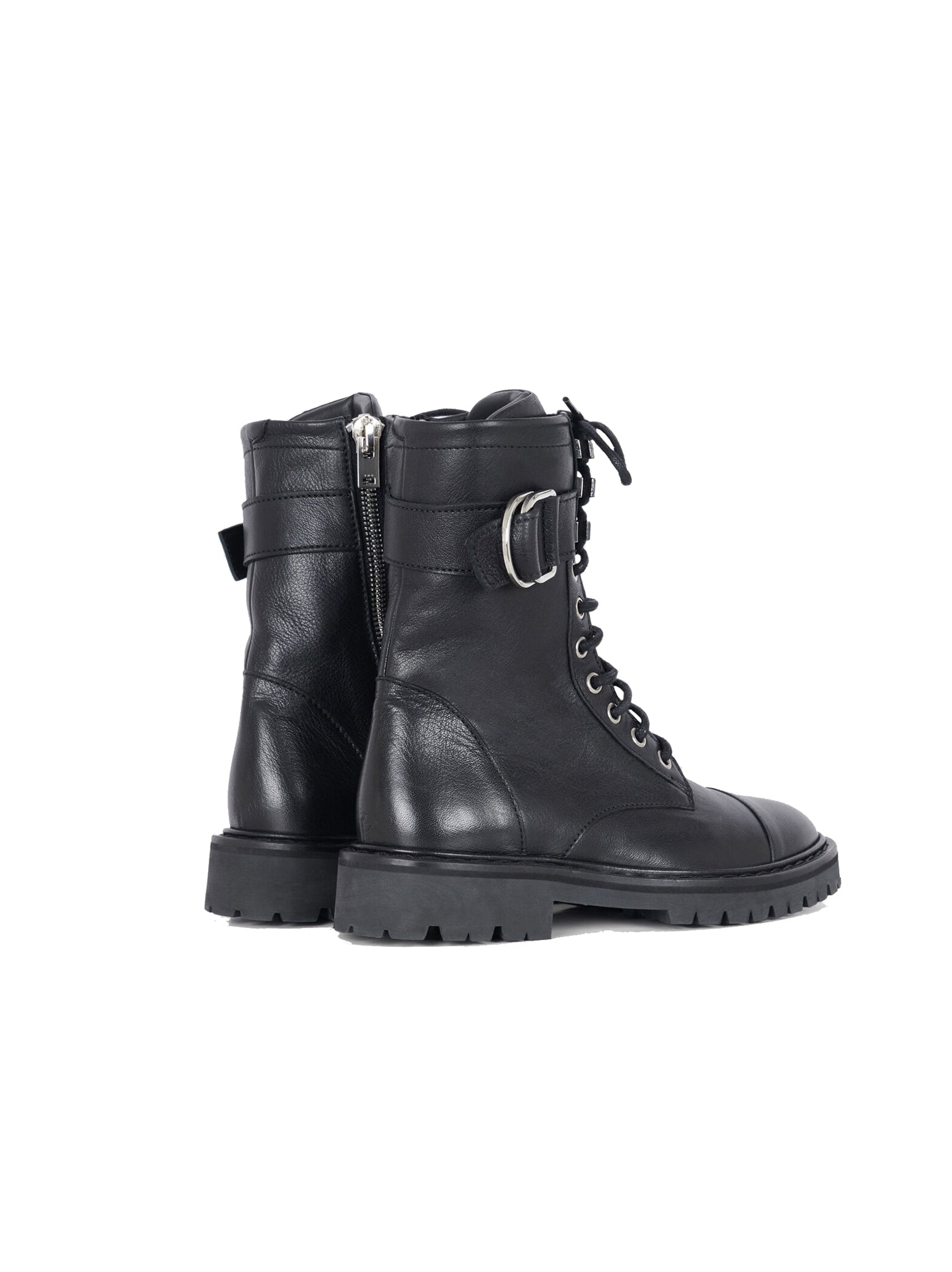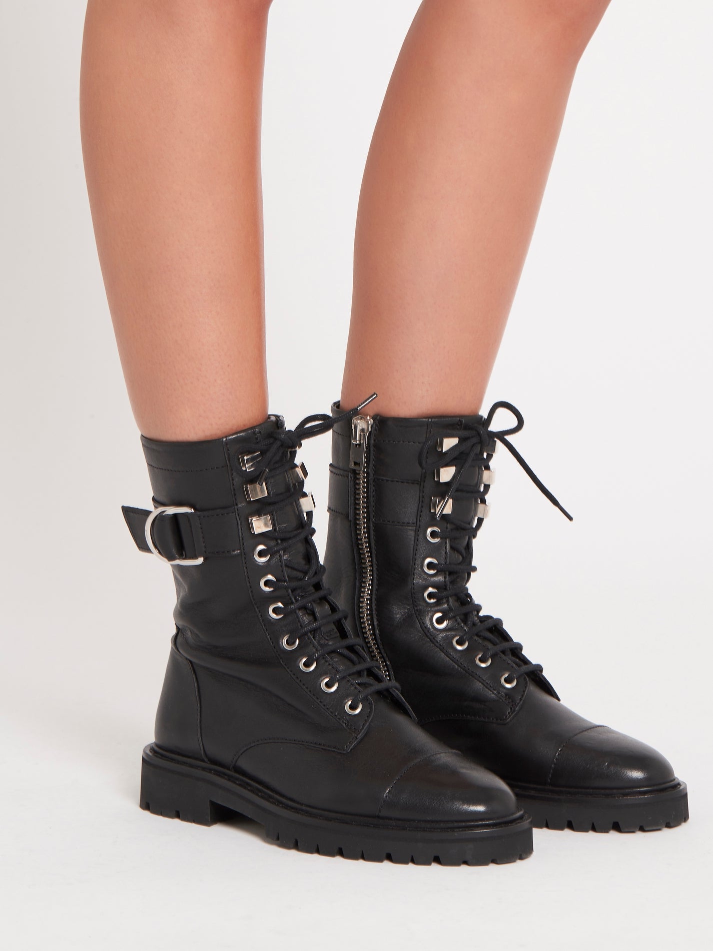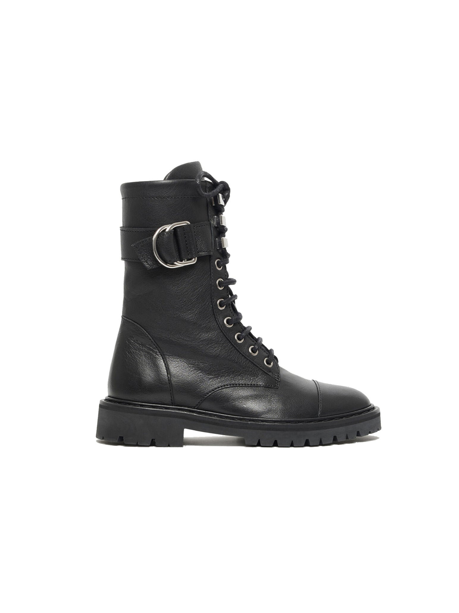 Step into a whole new you with the IRO Juadie Bootie in Black. Featuring lace-up design, round toe, metal finishes, buckled strap, side zip, and thick notched soles, these boots will add a grunge rock and roll feel to your entire wardrobe. Pair with a dress or jeans for a grunge and stylish outfit.