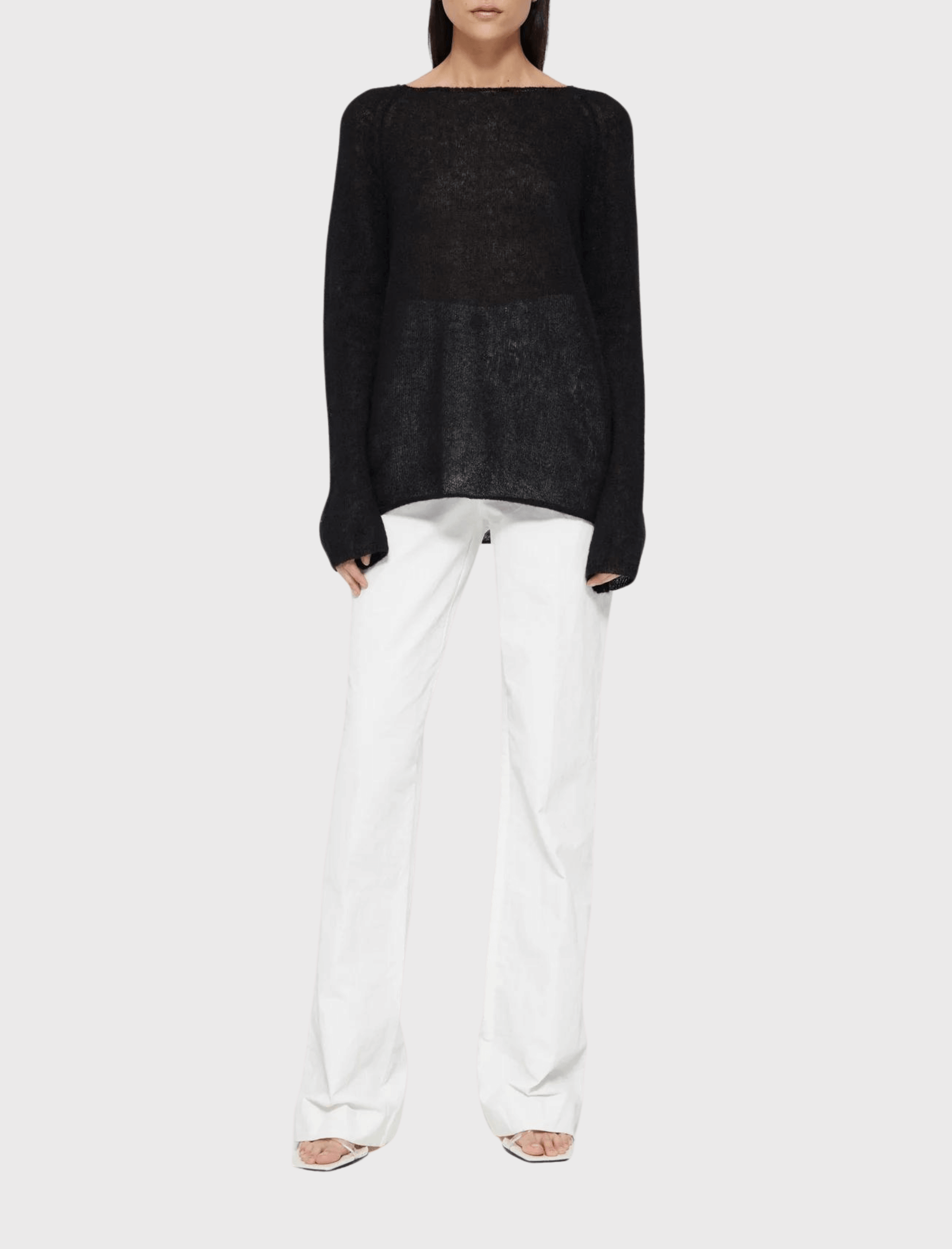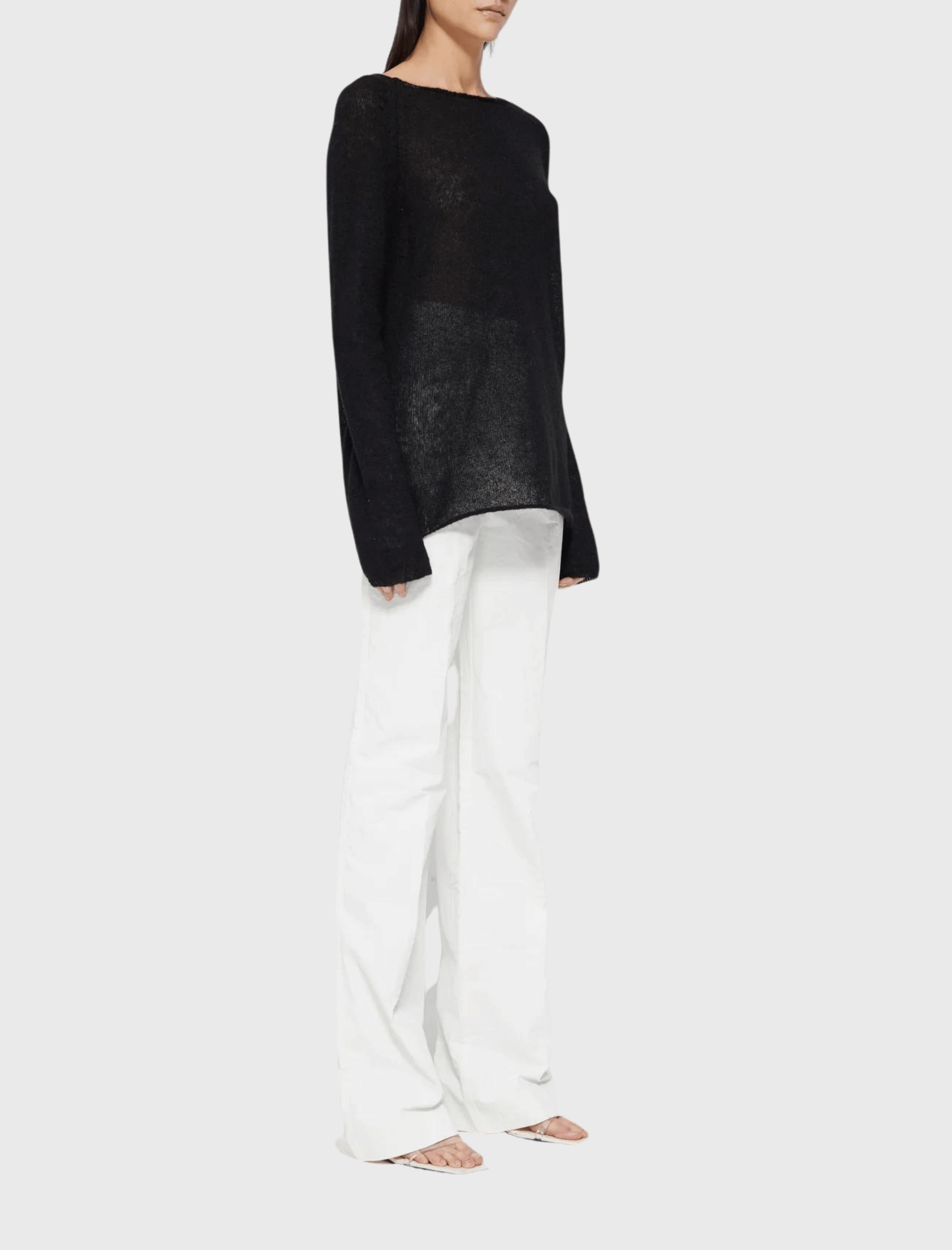 The RÓHE Layering Open Knitted Top in Noir—a sheer delight designed for those who embrace the art of layering. Meticulously crafted from a luxurious mohair and alpaca wool blend, sourced from the finest Italian mills, this top elevates your style game. The semi-sheer finish adds a touch of allure, making it perfect for transitioning from day to night.