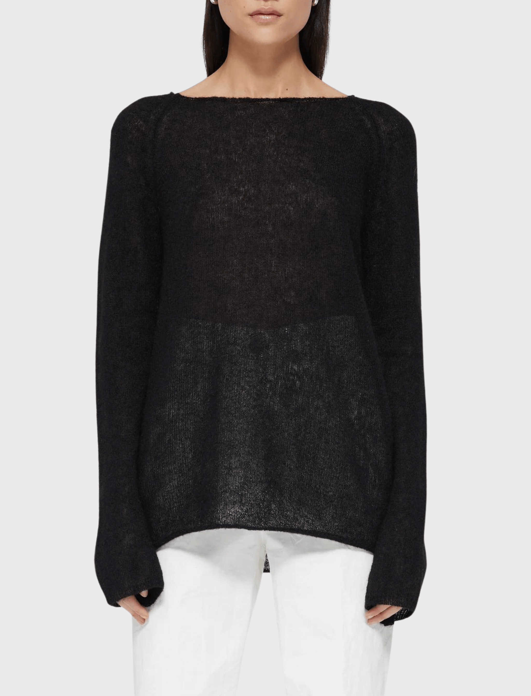 The Róhe Layering Open Knitted Top in Black is made from 37% Mohair, 37% Alpaca and 26% Nylon