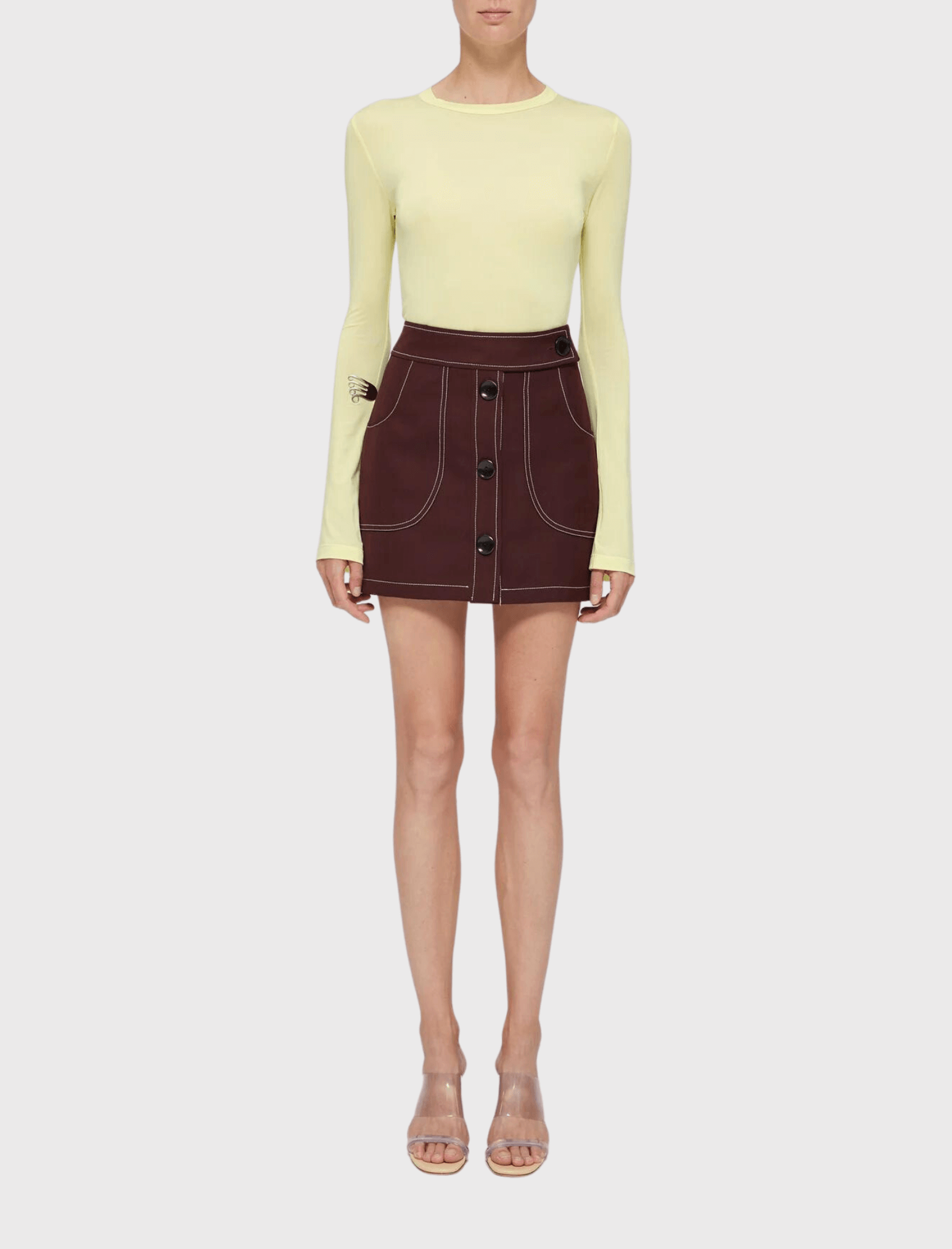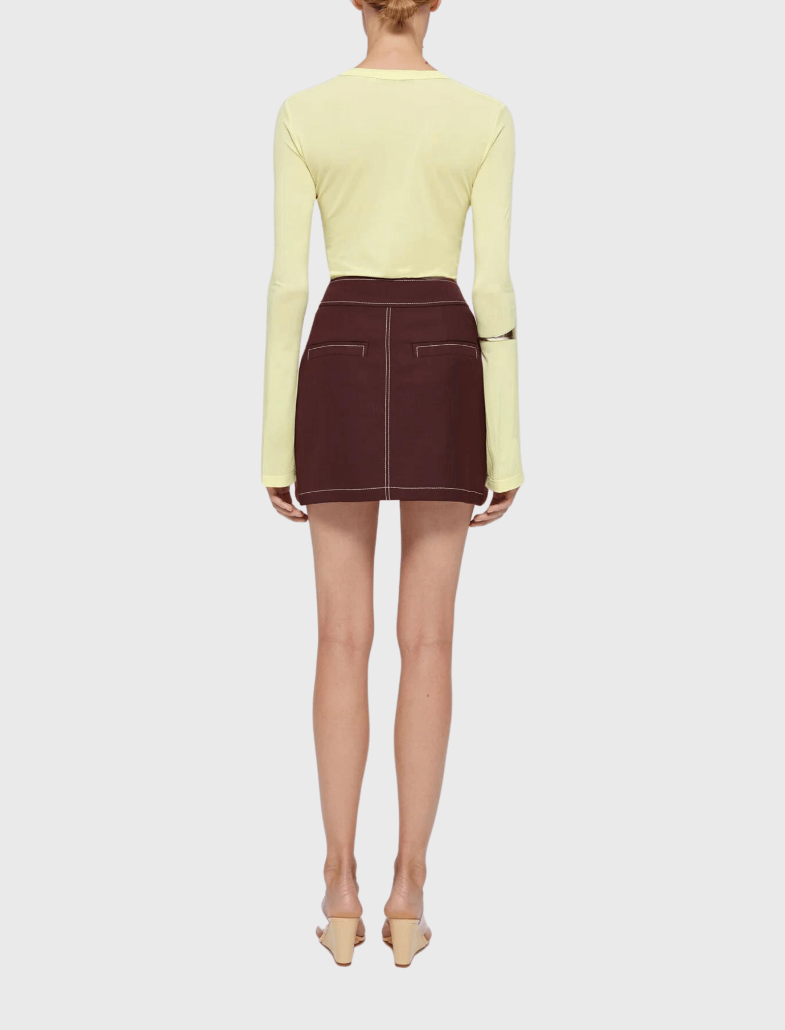 Woven from a premium wool-blend fabric, this skirt offers warmth and style, making it a versatile addition to your wardrobe. What sets it apart is the exquisite contrast stitching, which adds a touch of vintage charm to your contemporary look. Elevate your fashion game with this modern classic. Discover the Retro Mini Skirt by Róhe and embrace a style that transcends time and seasons.