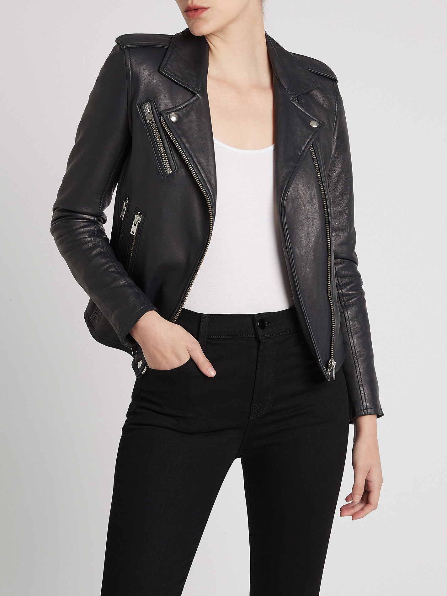The much loved IRO Newhan Jacket gets an update in Strong Blue this season. Constructed from soft lamb leather this leather jacket features a notched collar, a zip closure, three zip pockets and is finished with a polyester lining. Layer over your essentials for an effortless chic look.