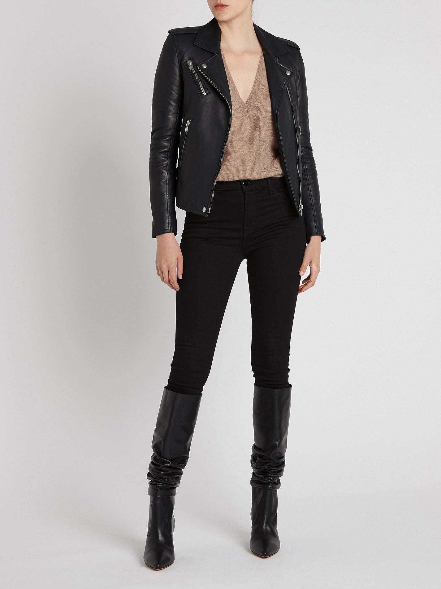 The IRO Newhan Leather Jacket in Strong Blue fits true to size