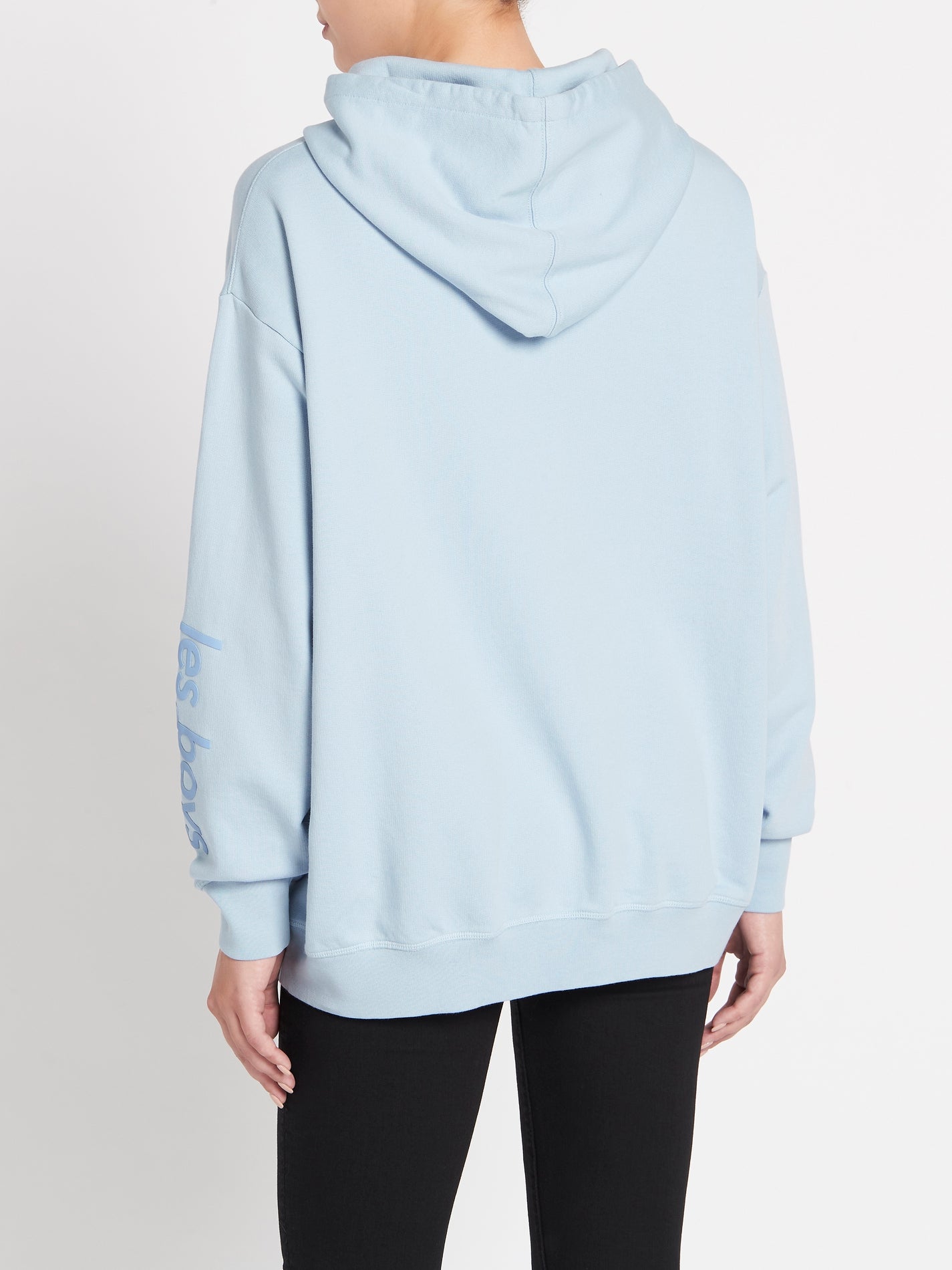 The Les Girls Les Boys Oversized Hoodie in Cashmere Blue fits true to size
